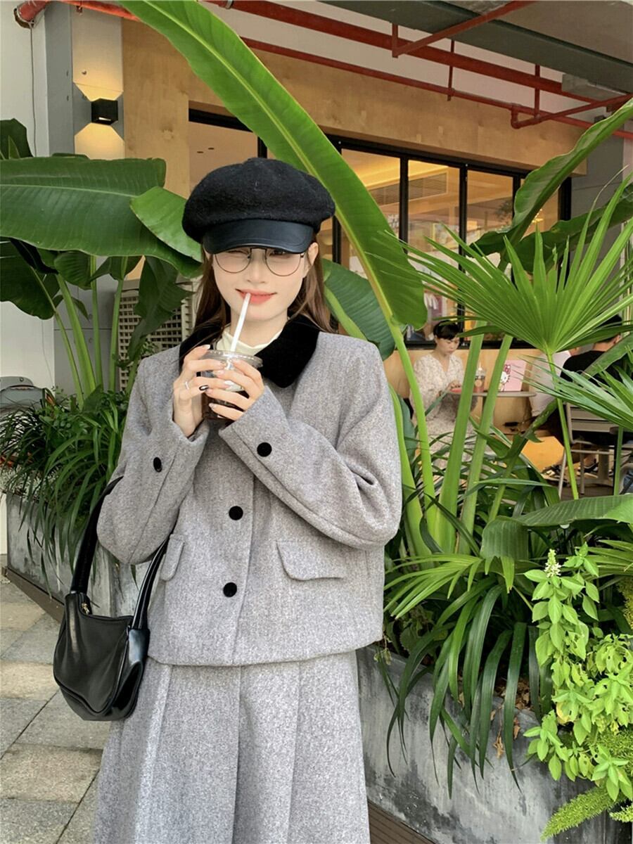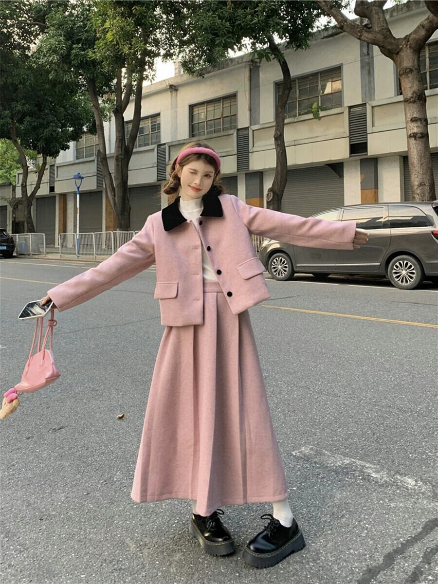 ポロ襟甘いフレンチデザイン長袖ウールコートハイウエストスカート女性の秋冬 2023 新作スーツ ロング 大人ガーリー スウィート キュート カジュアル オータム 秋物 ウィンター 冬物 missk58098816472