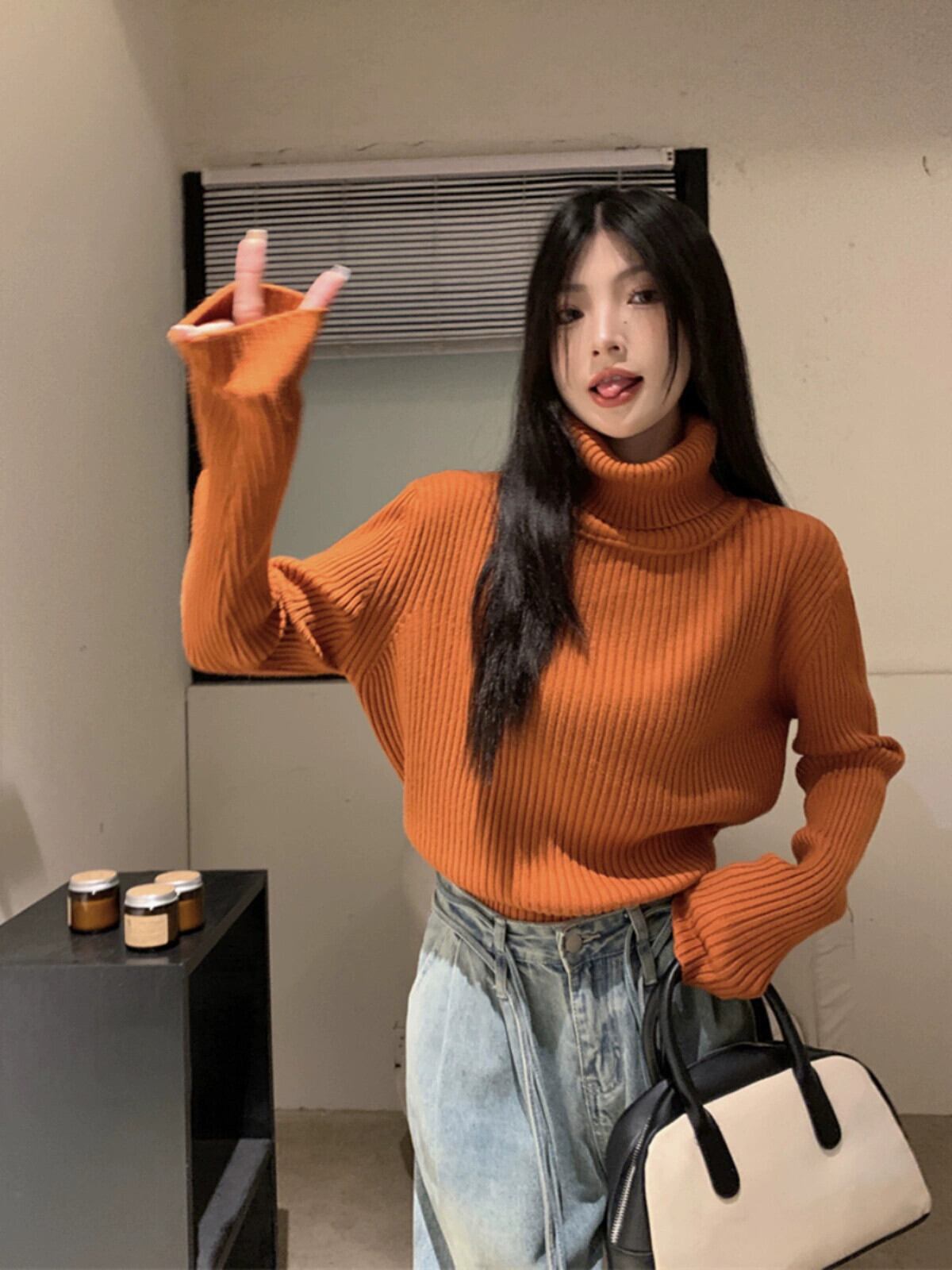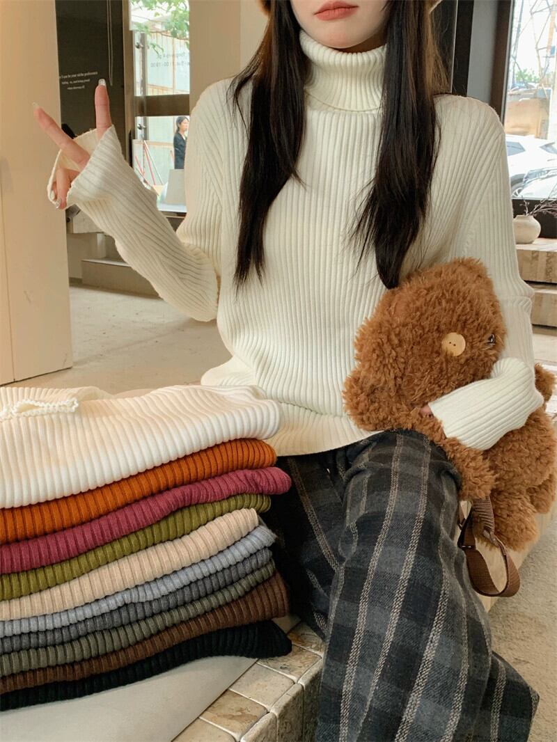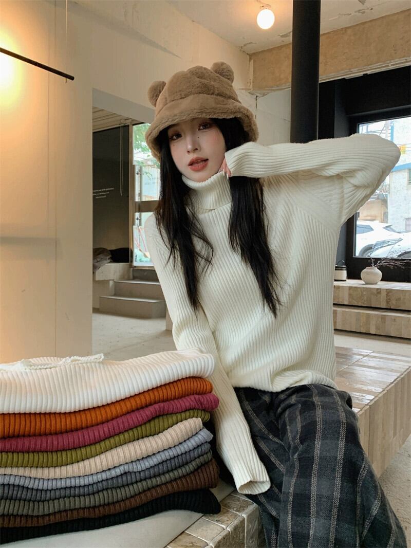 襟肥厚ニットセーター女性秋バージョン 2023 新スタイル怠惰なスタイルルーズインナー長袖底トップ ロング オータム 秋物 missk24001906166