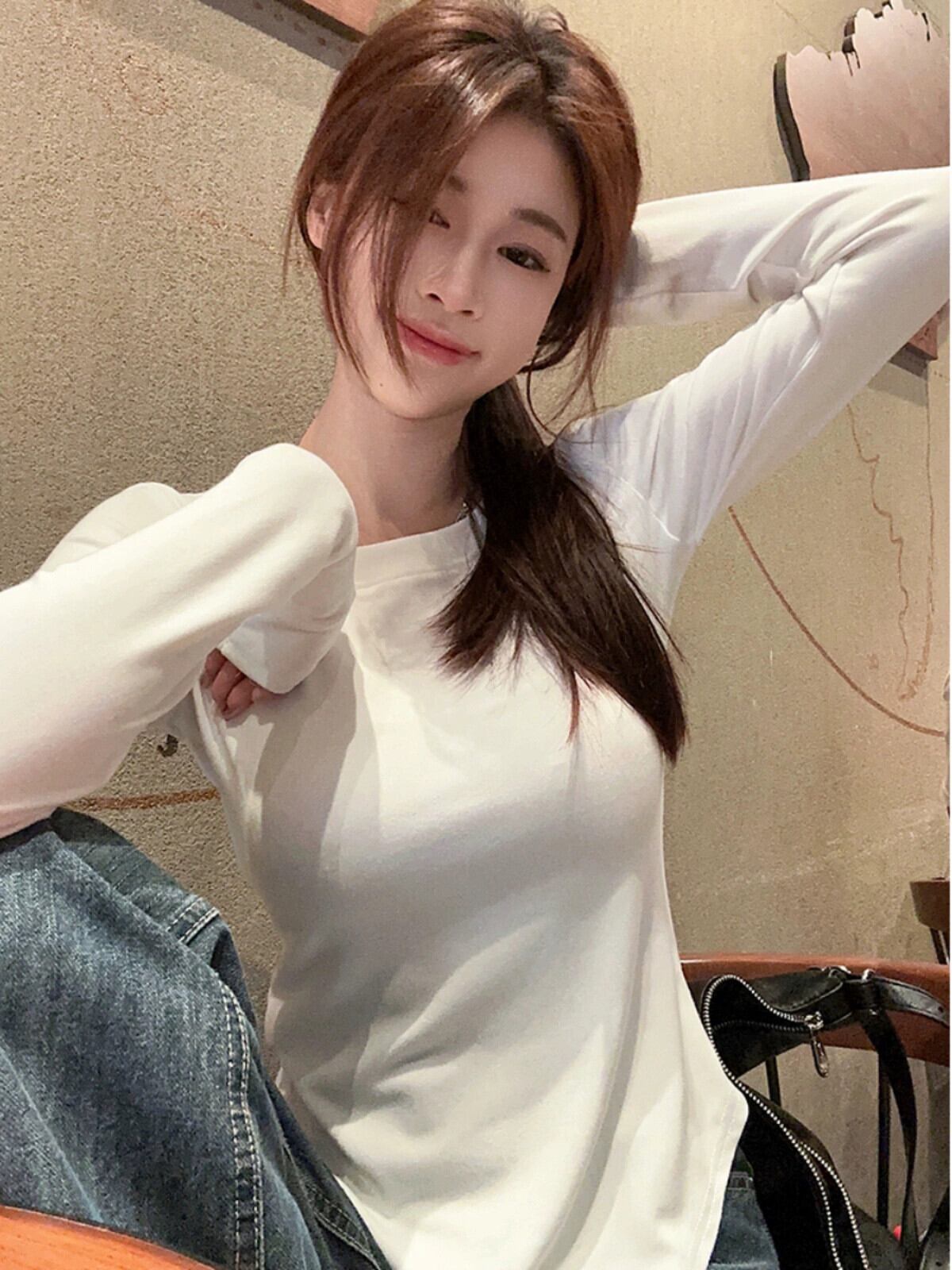 白い底シャツ女性秋バージョン 2023 新しいスリムフィット不規則な多目的インナー長袖 Tシャツイン ロング ホワイト オータム 秋物 missk90082011823