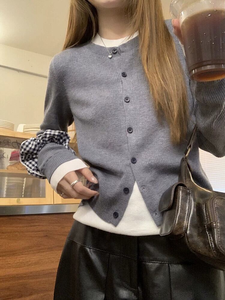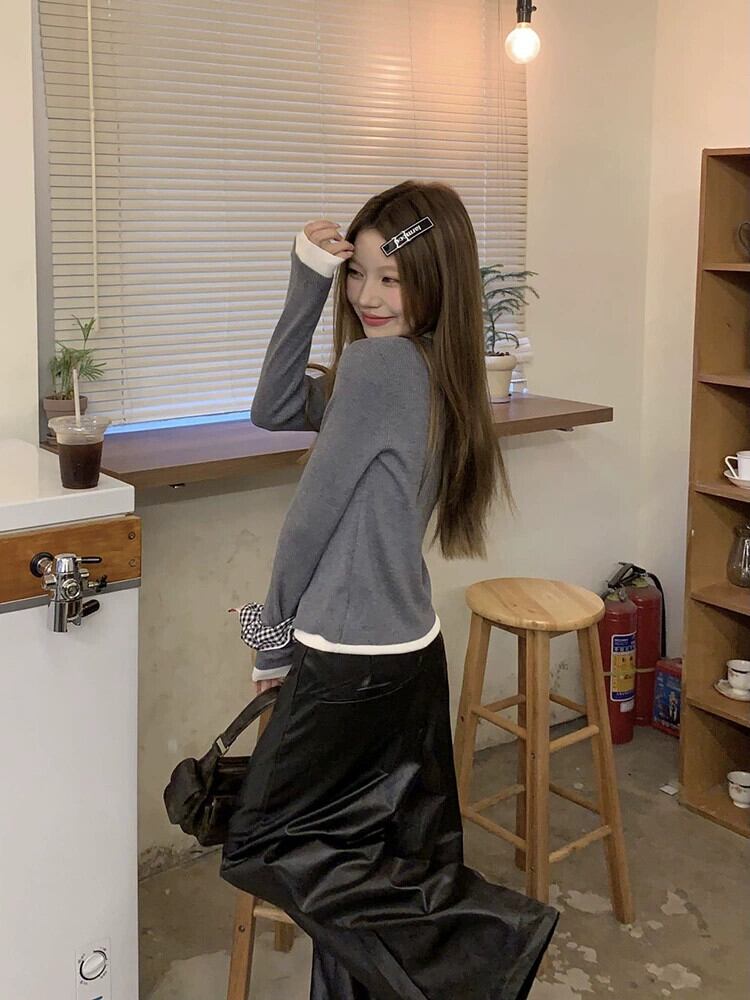 怠惰なスタイルのコントラストカラー偽ツーピース長袖セーター女性秋冬 2023 新しいスリムシングルブレスト多用途ボトリングシャツ ロング オータム 秋物 ウィンター 冬物 missk26134405880