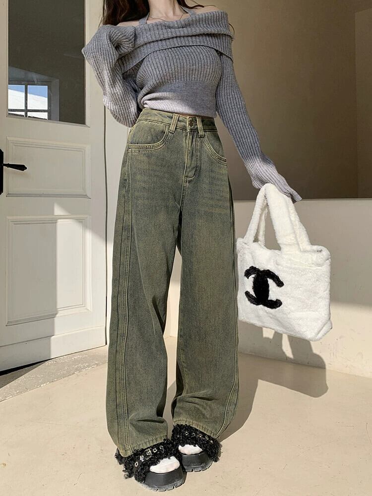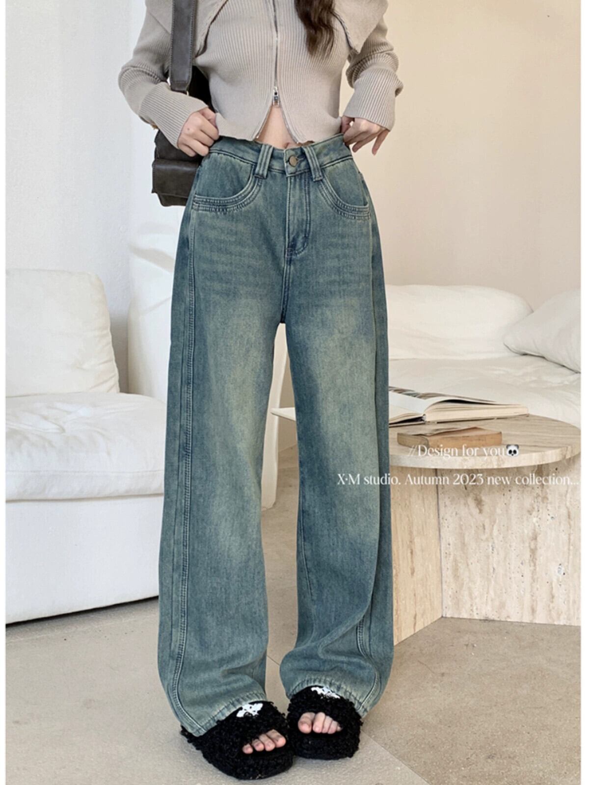ベルベット肥厚ジーンズ女性の冬 2023 新しいレトロハイウエスト痩身多用途ストレートフロアレングスモップパンツイン ウィンター 冬物 missk49554328290