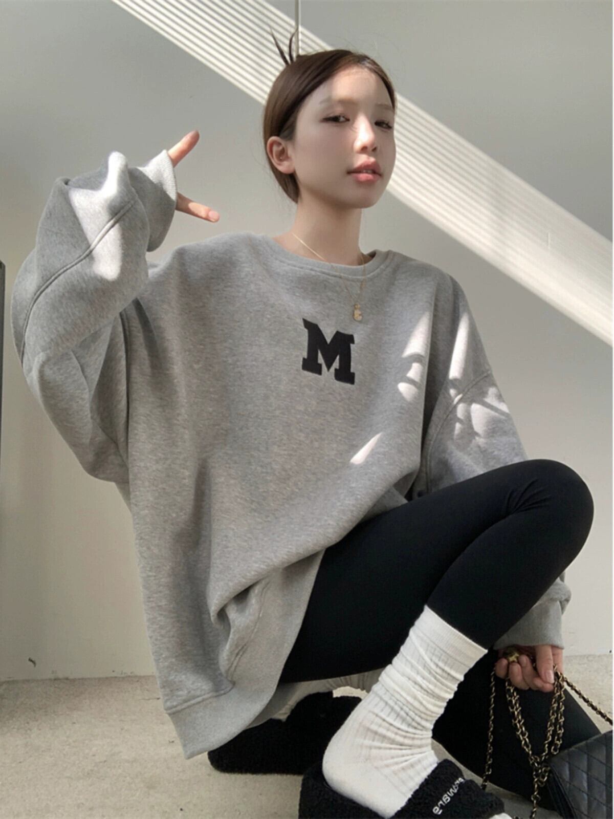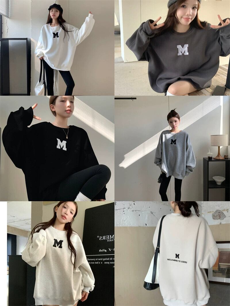 刺繍文字プラスベルベットトレーナー女性秋冬 2023 新しいカップルスタイルルーズミッドレングス長袖グレートップトレンディな ロング レッド オータム 秋物 ウィンター 冬物 missk73367511776