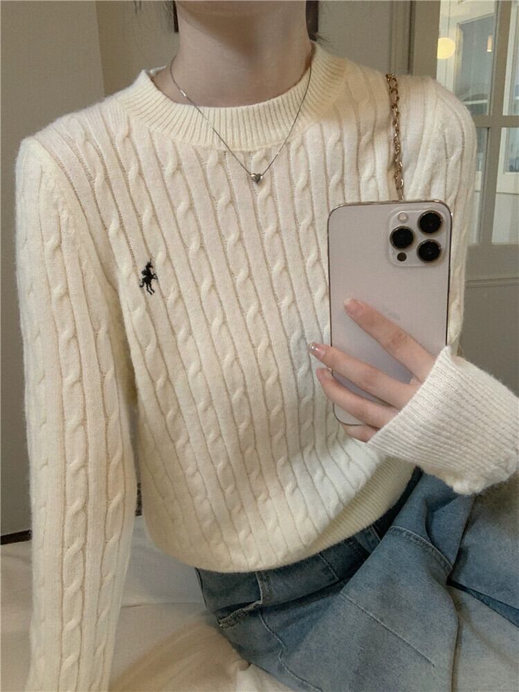 刺繍ツイストニットウェア女性秋バージョン 2023 新しいシックな怠惰なスタイルのインナープルオーバー長袖ボトリングシャツ ロング レッド オータム 秋物 missk41870695917