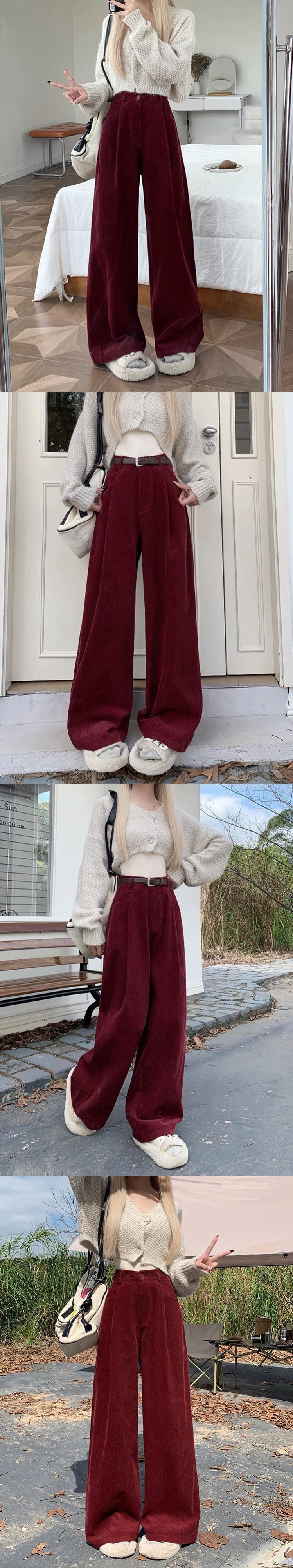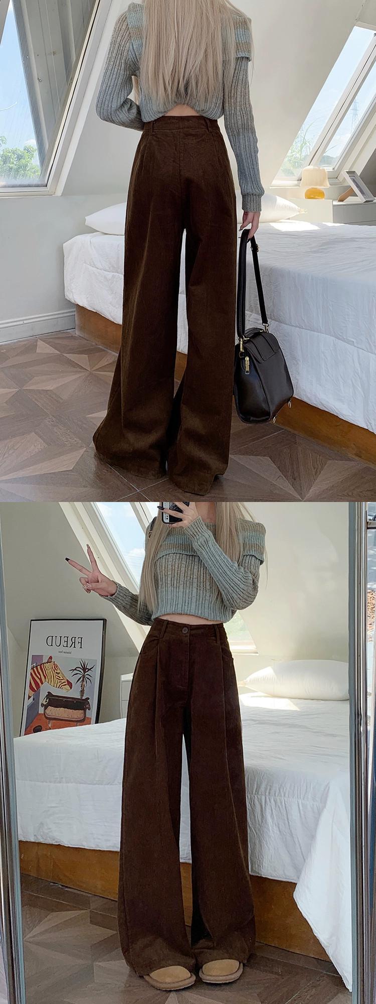 コーデュロイカジュアルパンツ女性秋冬 2023 新しいレトロハイウエストプラスベルベットデザインワイドレッグストレートフロアレングスパンツ オータム 秋物 ウィンター 冬物 missk1704818784