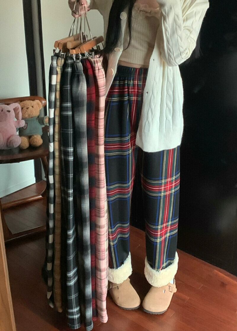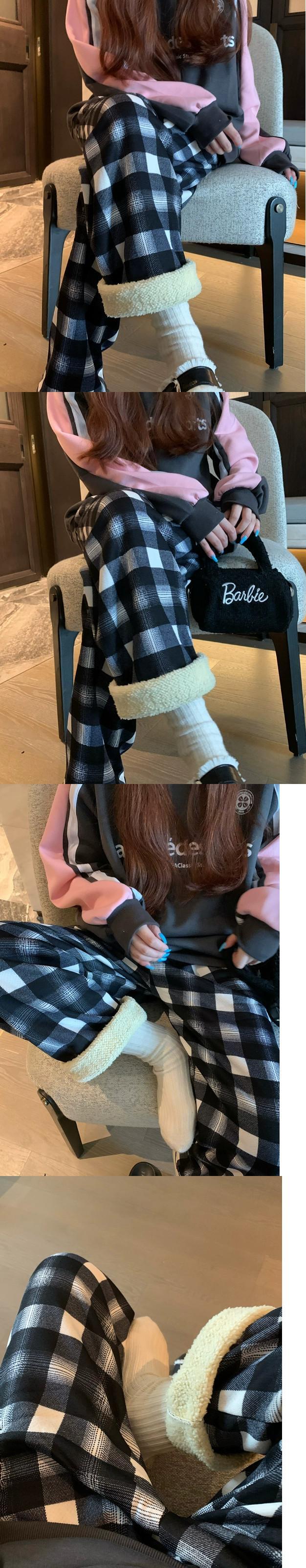 ベルベットと厚みのあるシェルパチェック柄のカジュアルパンツの女性、秋冬バージョン 2023 新しいハイウエスト痩身ワイドレッグフロアレングスパンツ オータム 秋物 ウィンター 冬物 missk40587492571