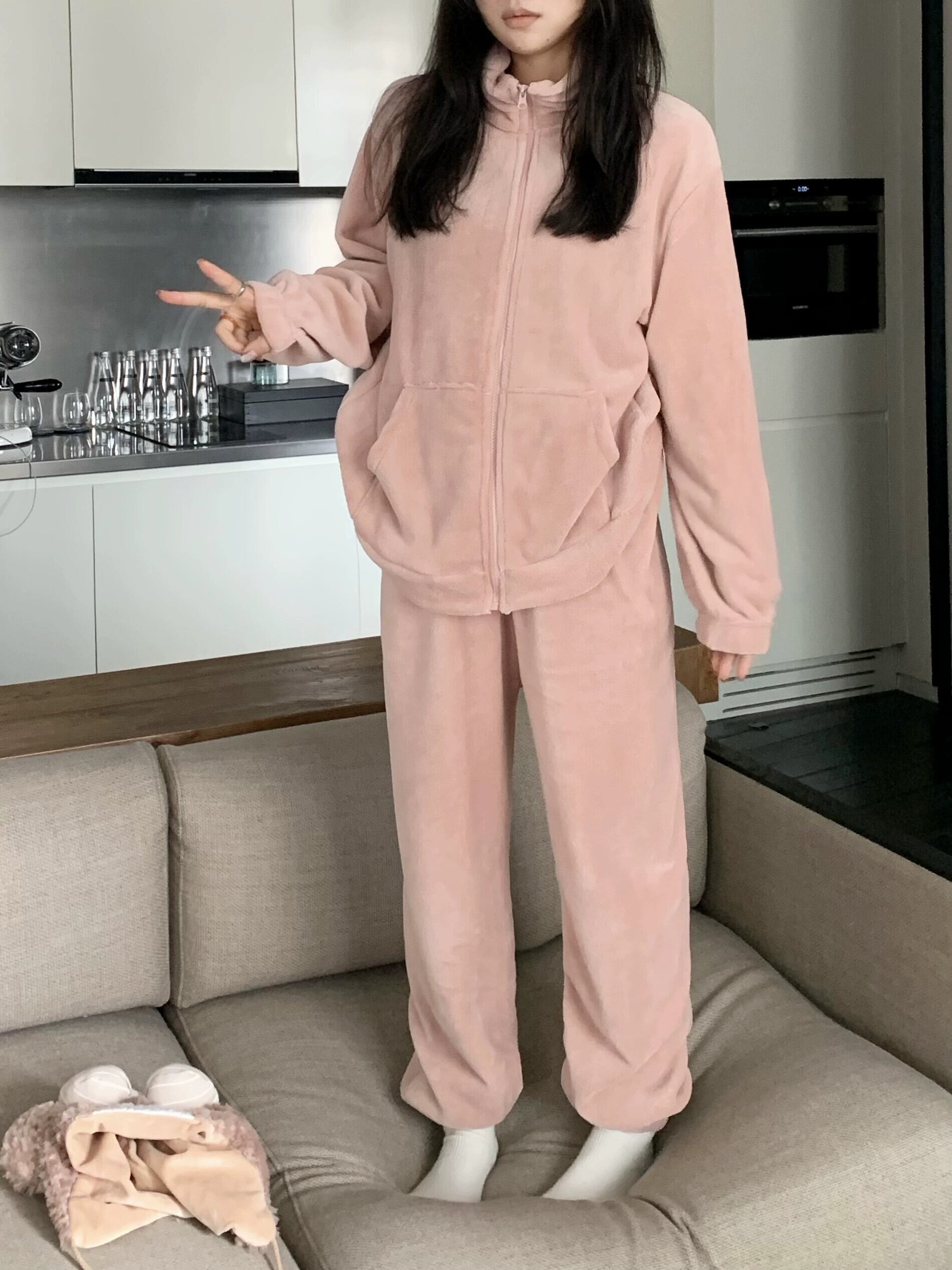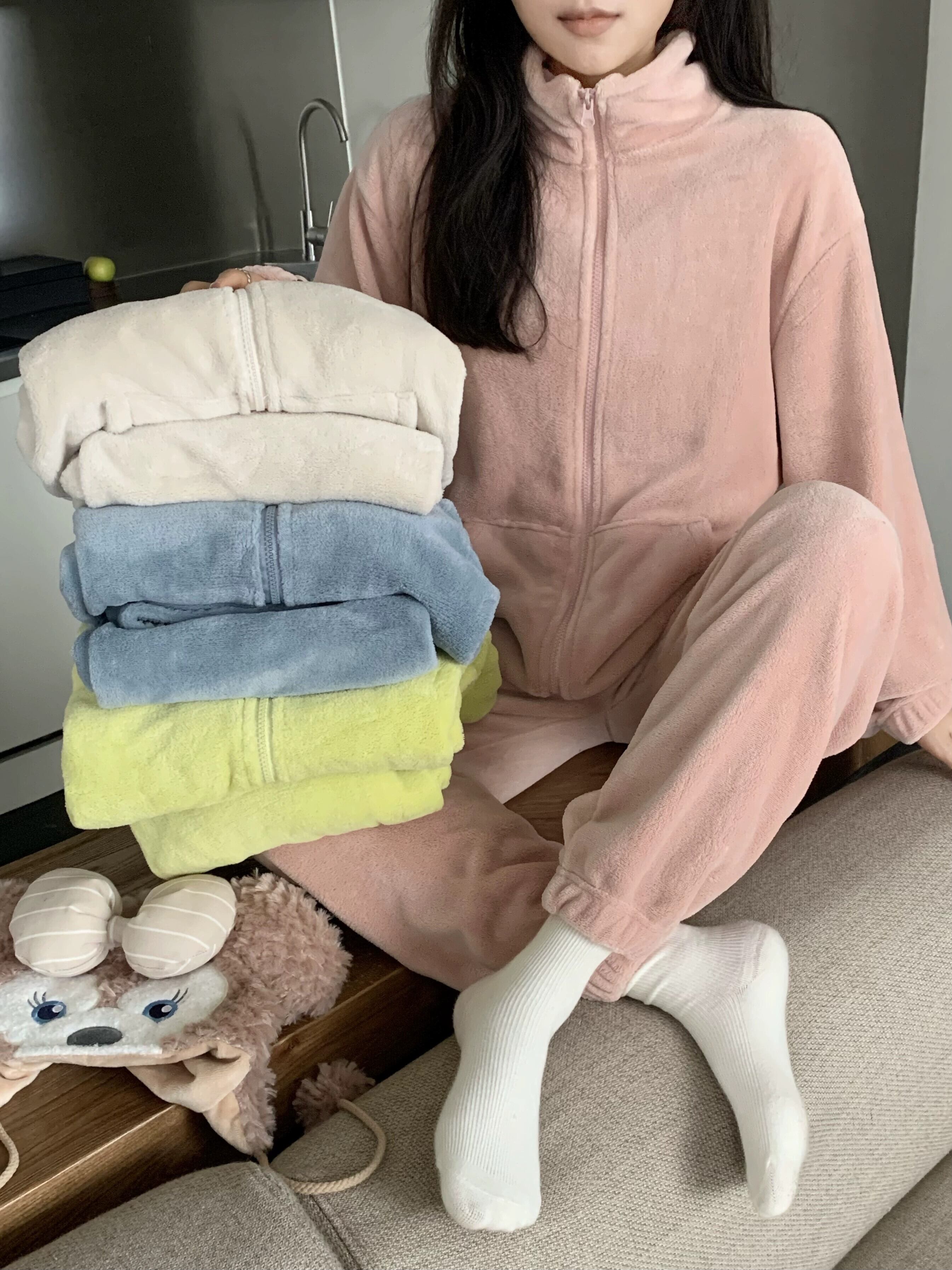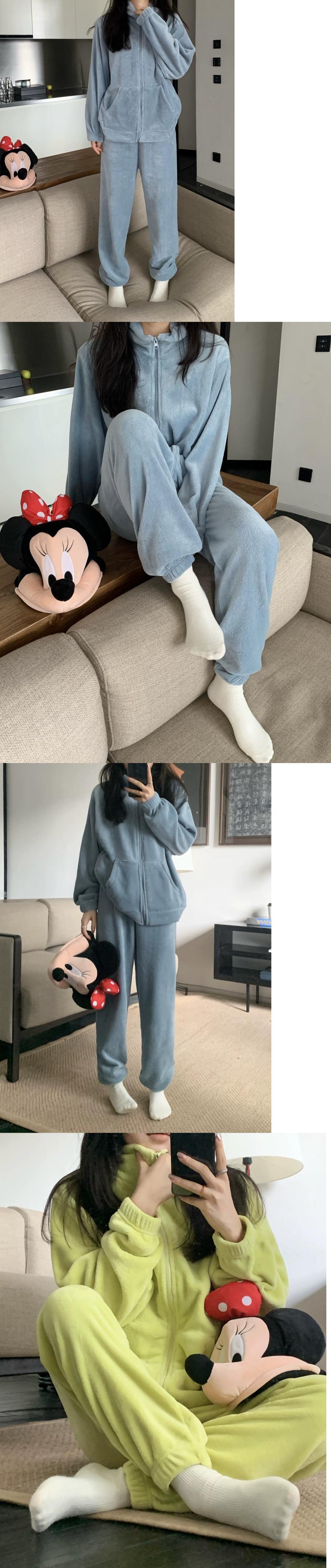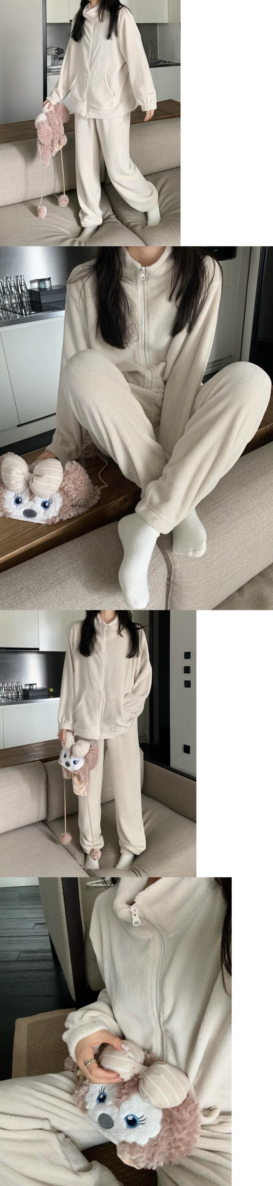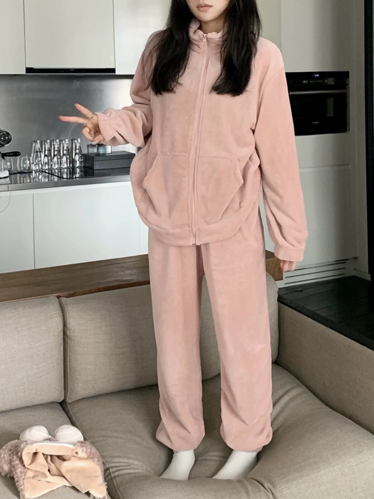 コーラルベルベットのスタンドアップカラー厚くゆったりとしたシンプルな長袖パジャマとズボンの女性の2023秋冬新作ホームウェア2点セット ロング オータム 秋物 ウィンター 冬物 missk72604200832