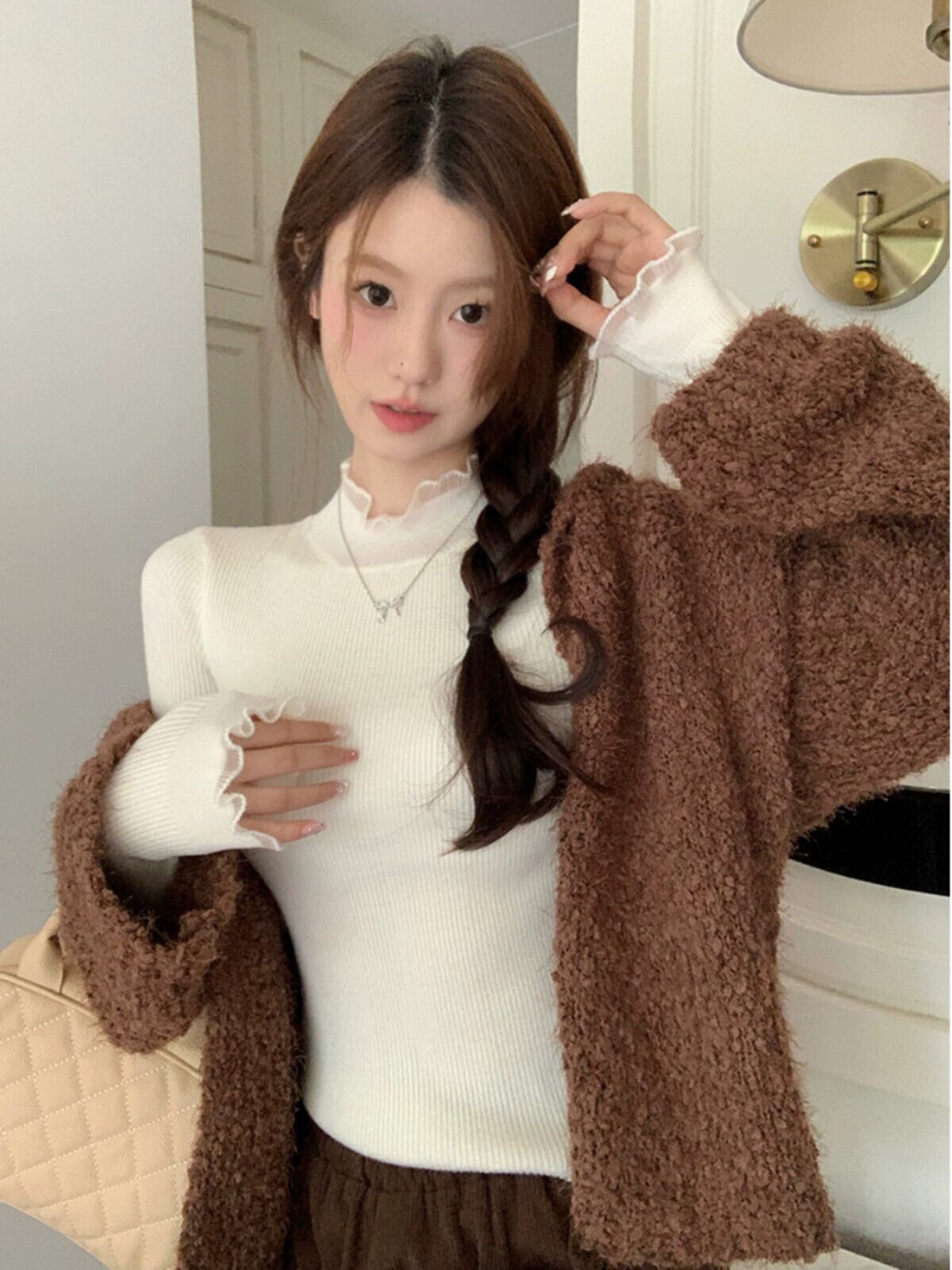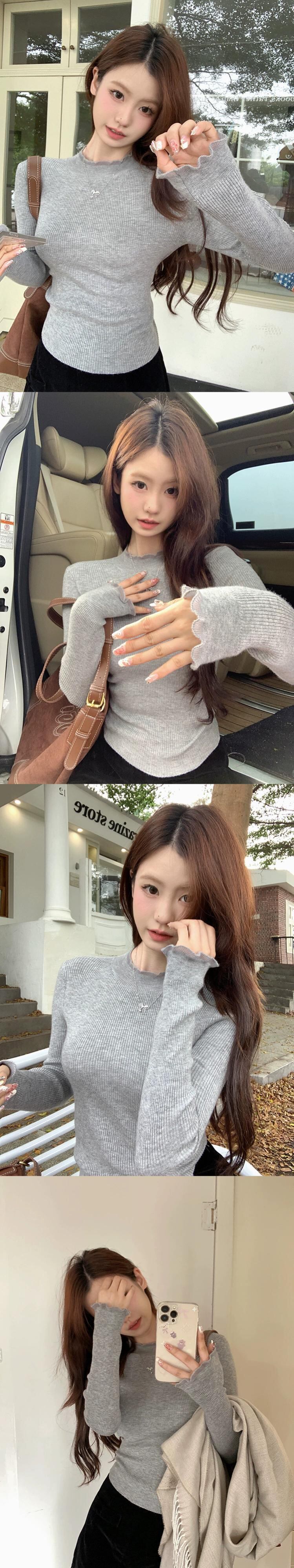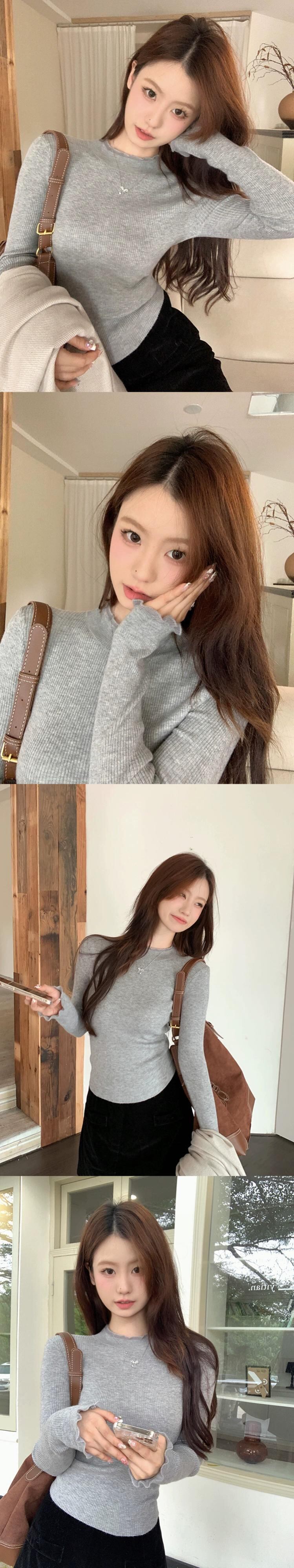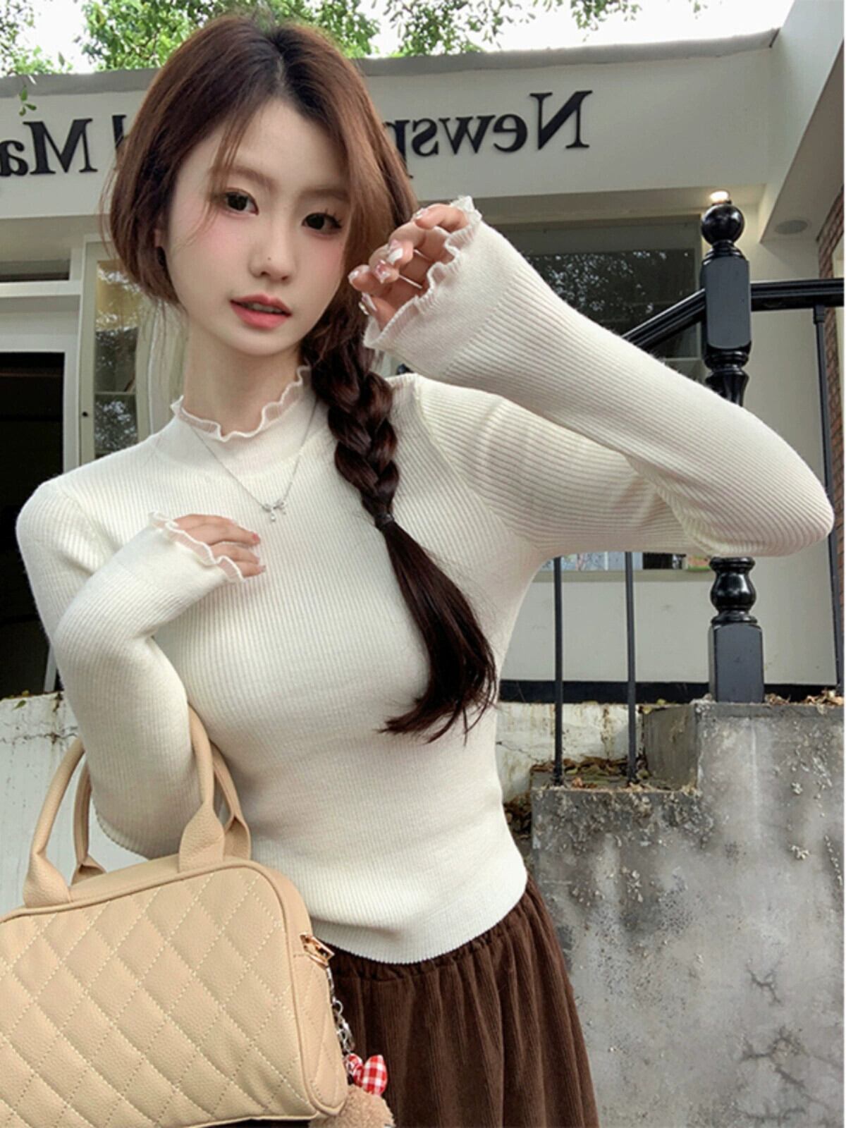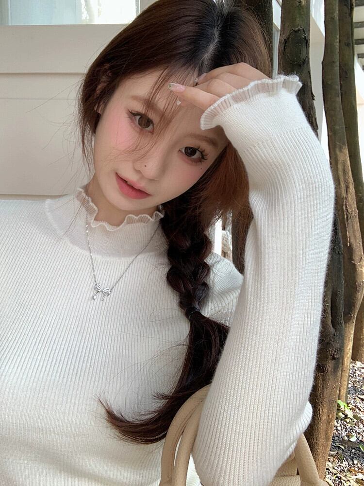 ハーフタートルネックセーター女性、秋バージョン2023新しい純粋な欲望の耳エッジスリミングスリム長袖ボトリングトップ ロング オータム 秋物 ピュア missk25384384419