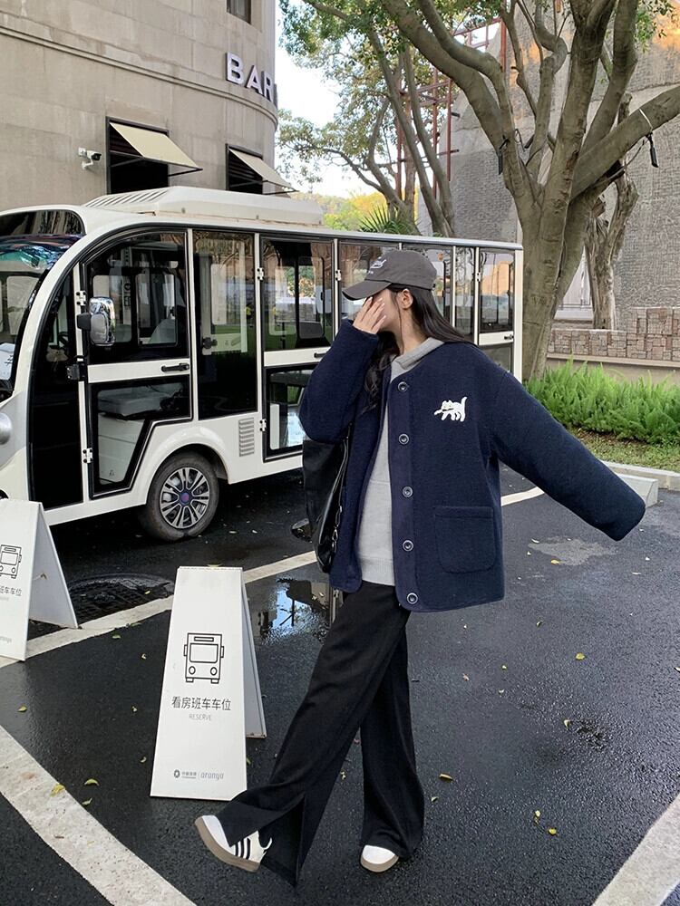 レトロアメリカン野球ユニムジャケット女性秋冬 2023 新しいルーズミッドレングスデザインカジュアル長袖トップ ロング オータム 秋物 ウィンター 冬物 missk11303504895