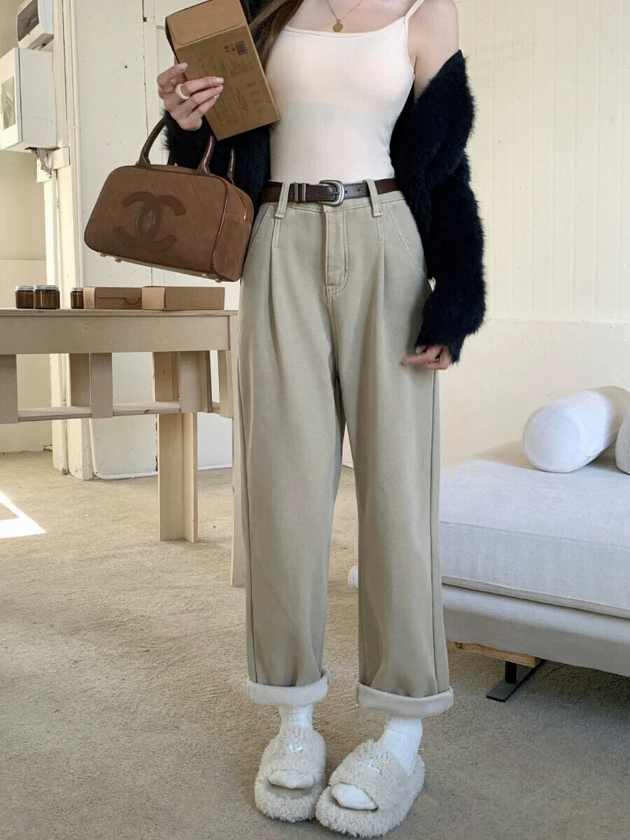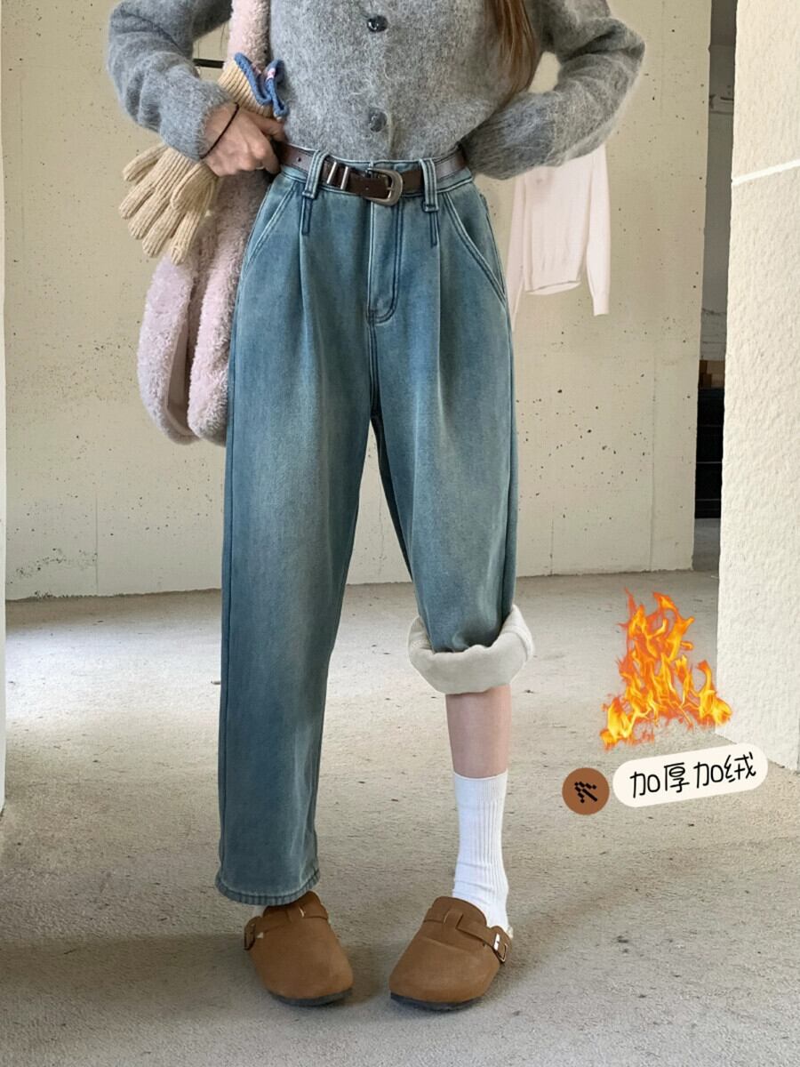 レトロベルベット肥厚ジーンズ秋冬 2023 新しいハイウエストスリムファッション暖かいストレートパンツ女性のパンツ ハイウェスト オータム 秋物 ウィンター 冬物 missk99780167107