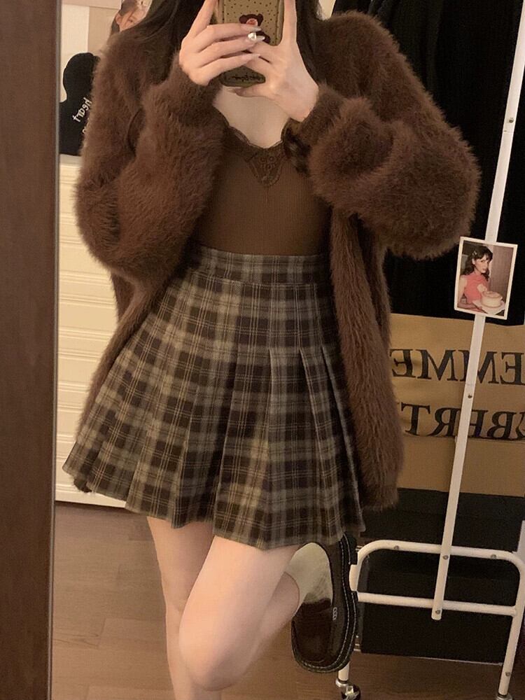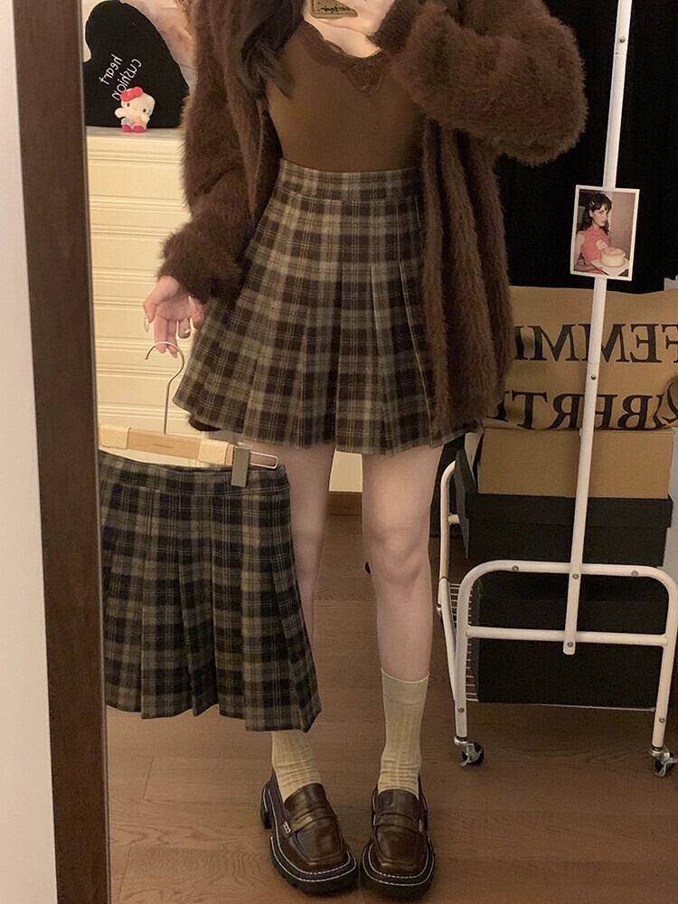 チェック柄スカートレディース秋冬バージョン2023新作ハイウエストスリムデザイン甘辛Aラインプリーツショートスカート 大人ガーリー スウィート キュート カジュアル オータム 秋物 ウィンター 冬物 missk65661287008