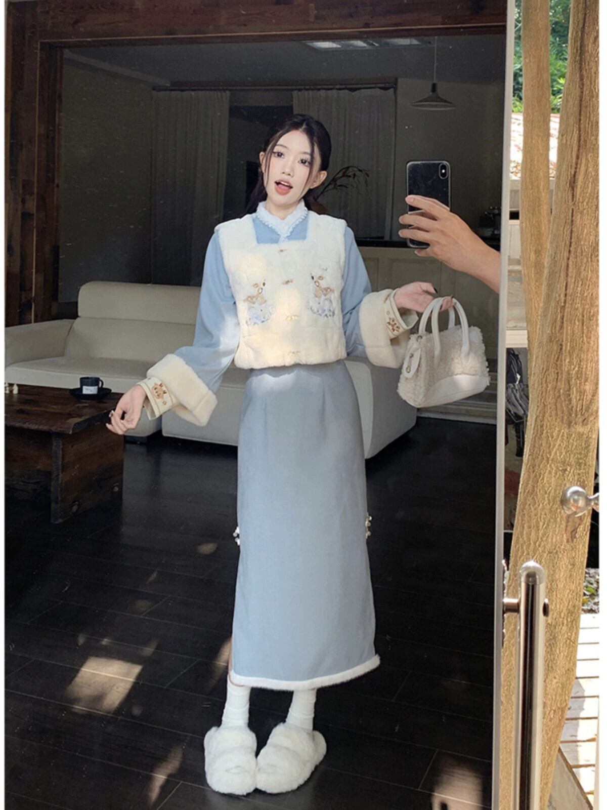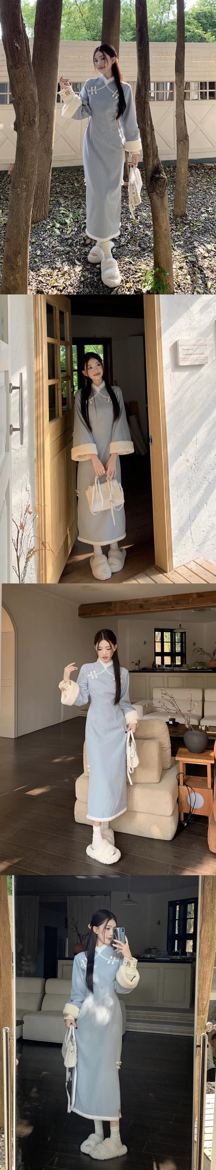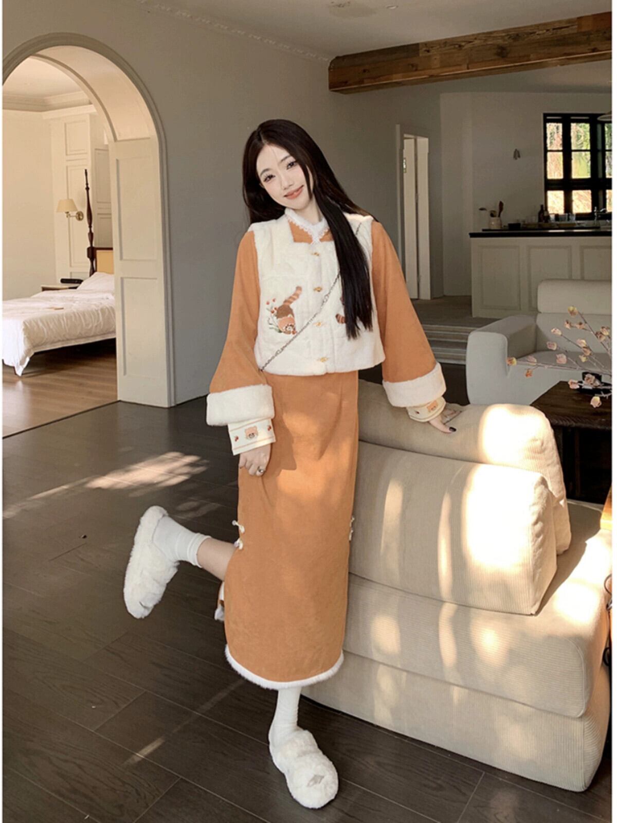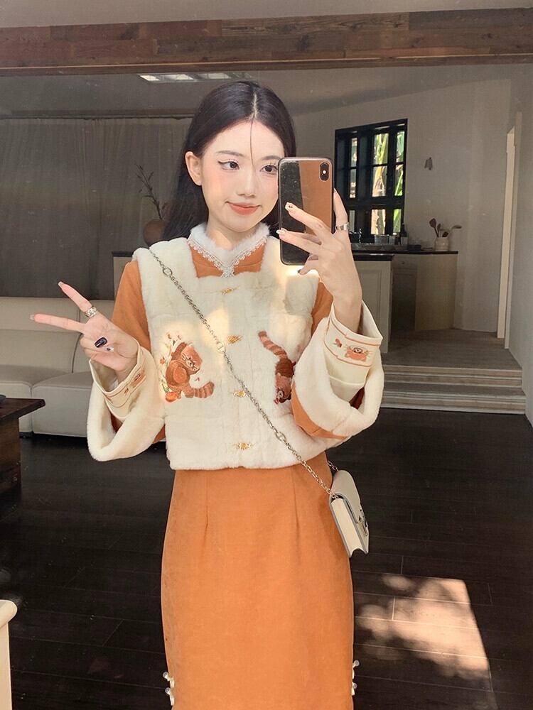 中国刺繍模造子羊毛ベストプラスベルベット肥厚チャイナドレス女性の冬 2023 新しいツーピースセット レッド ウィンター 冬物 missk70286396167