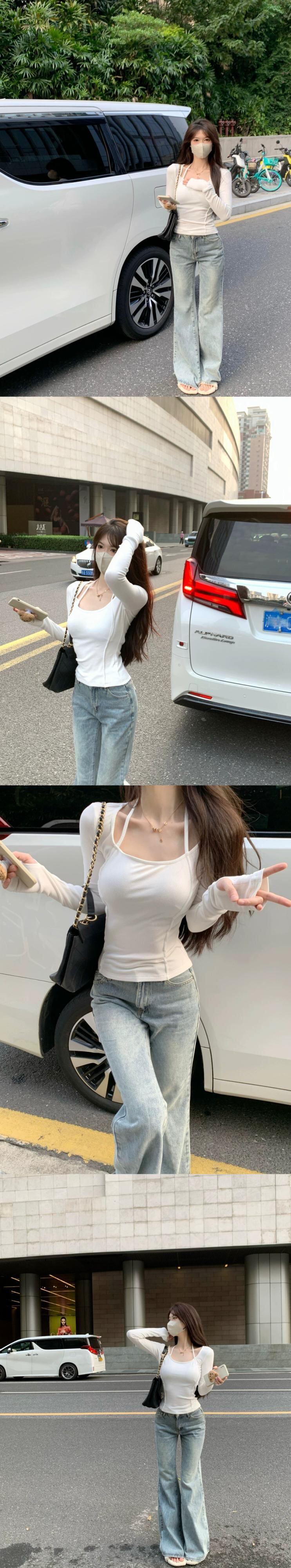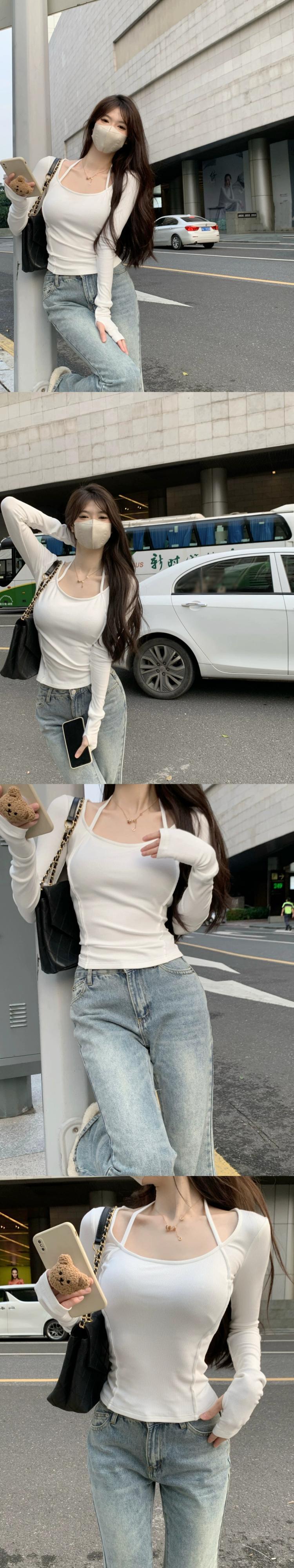Pure Desire ボトリングシャツ レディース 秋バージョン 2023 ホルターネック スリムフィット 長袖 Tシャツ イン ロング オータム 秋物 missk15349937871