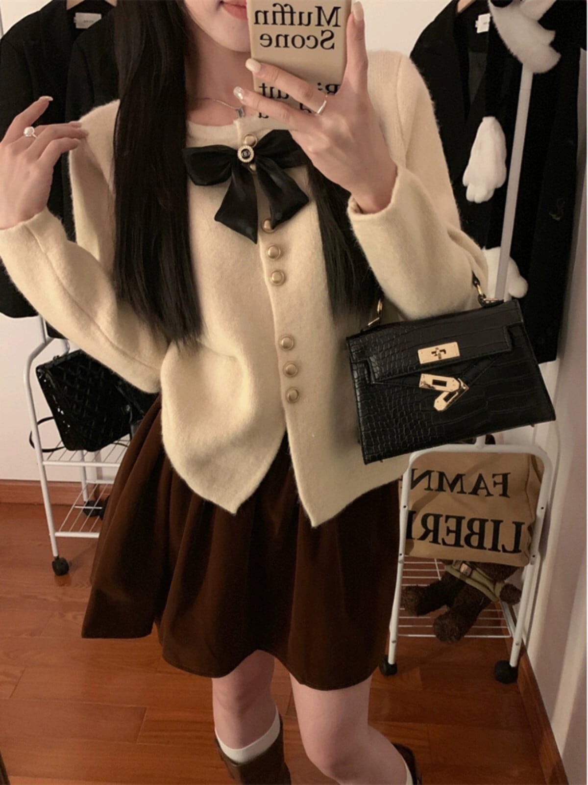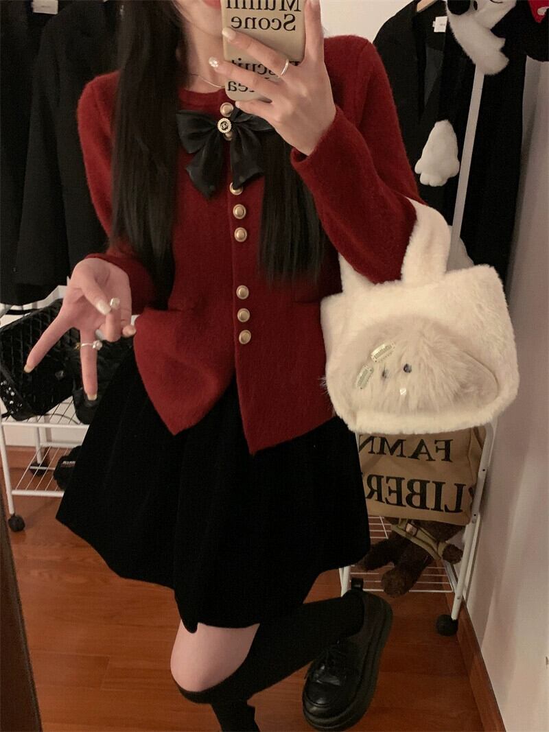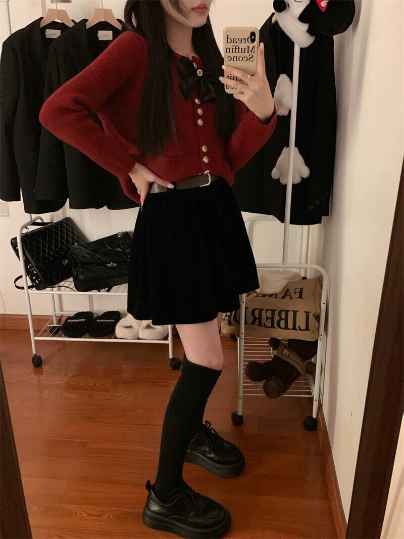 色:ブラックベルベットスカート,コーヒーカラーベルベットスカート,赤い小さな香りのトップ,アプリコットの小さな香りのトップ