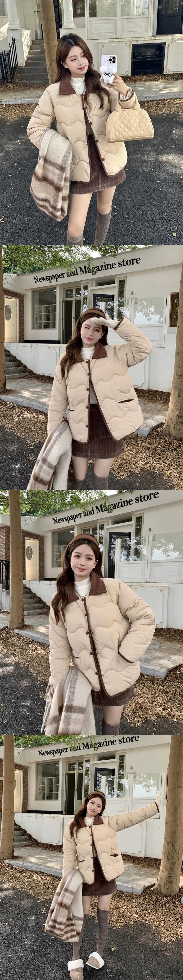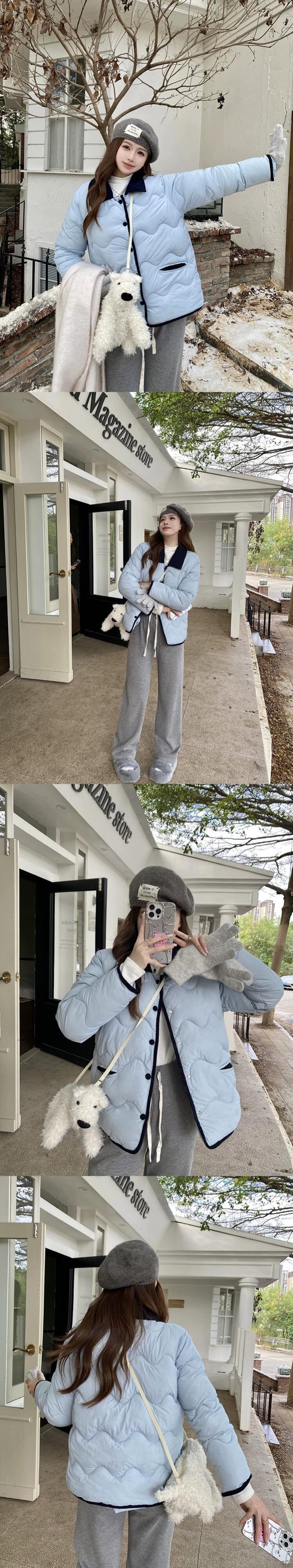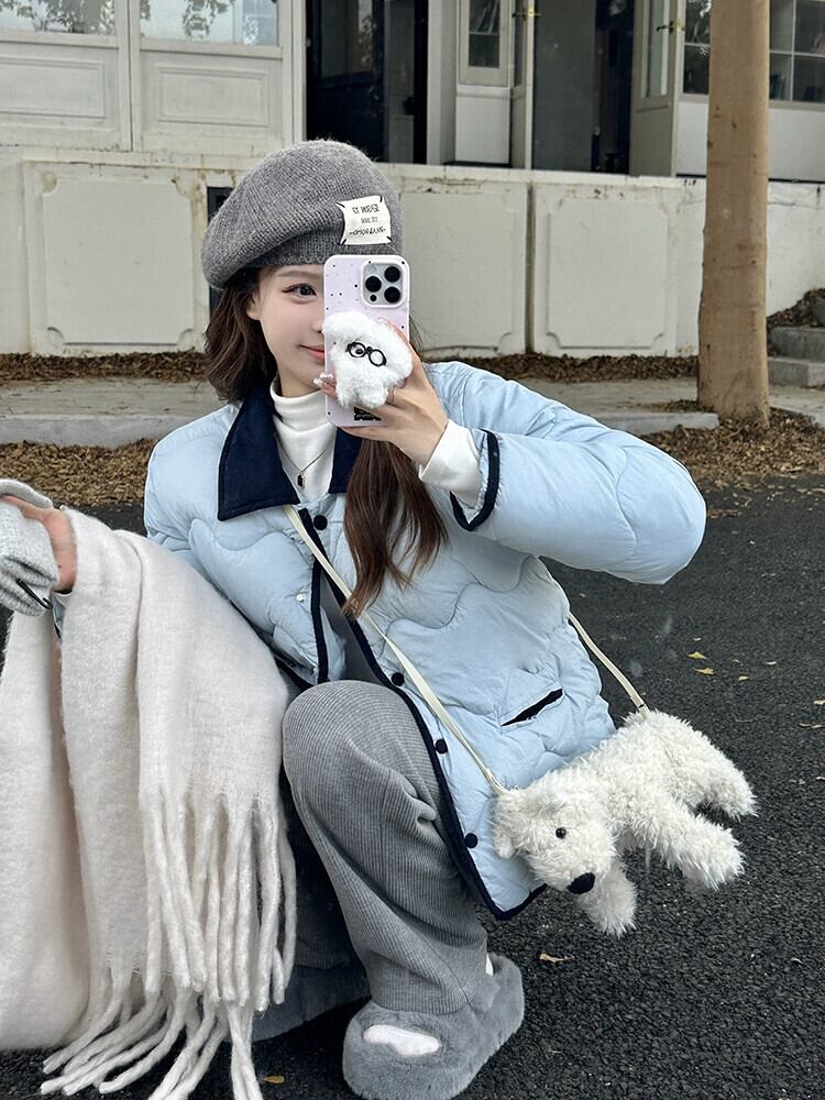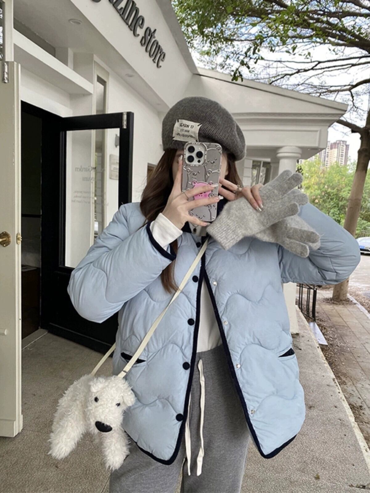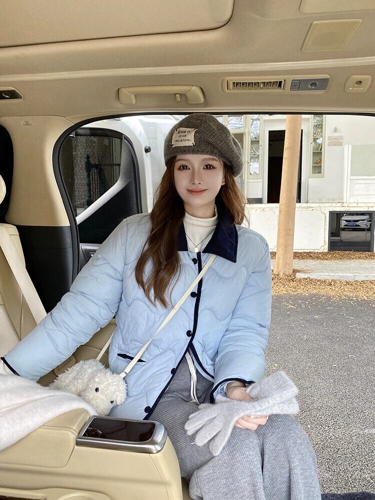 コントラストカラーのポロカラーコットンコート女性の秋と冬 2023 新しいカレッジスタイル肥厚暖かいデザインルーズコットンコート オータム 秋物 ウィンター 冬物 missk21148883447