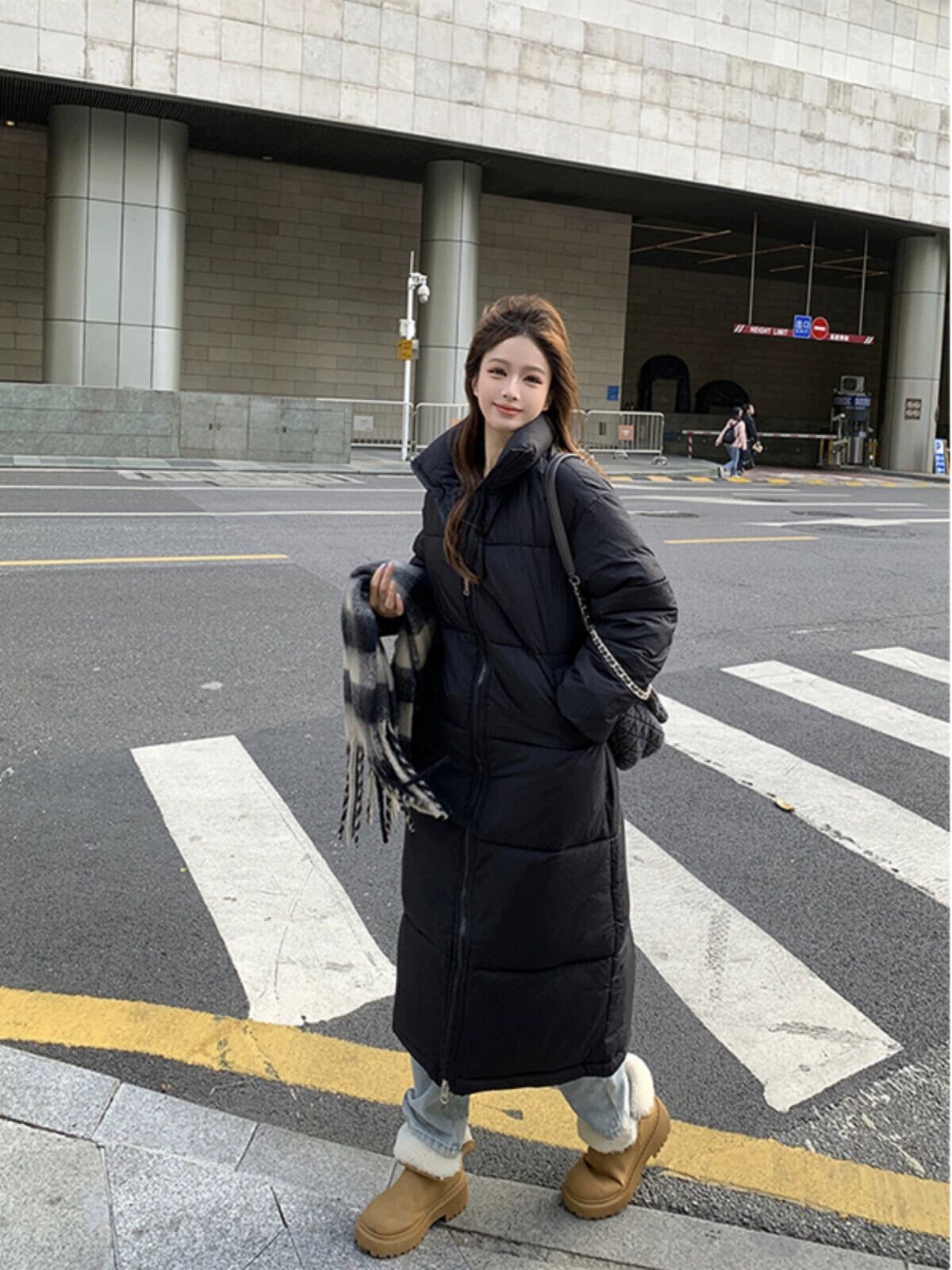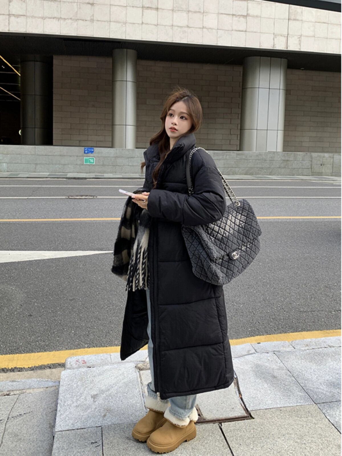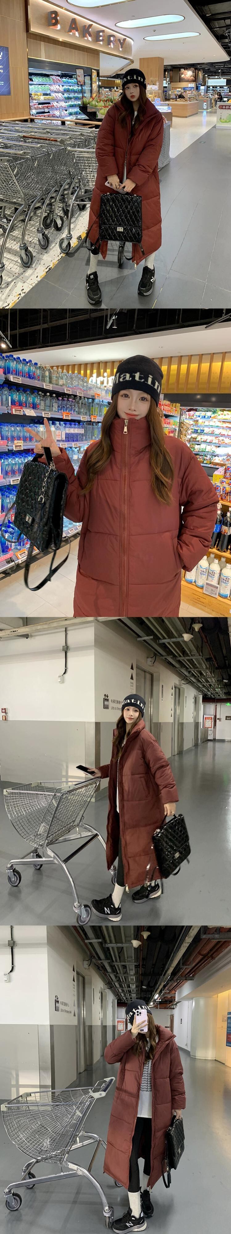 ロング膝丈コットンコート女性の冬の新しいスタイル厚くて暖かい黒ルーズコットンコートとコートトレンディ ブラック ウィンター 冬物 missk32527036582
