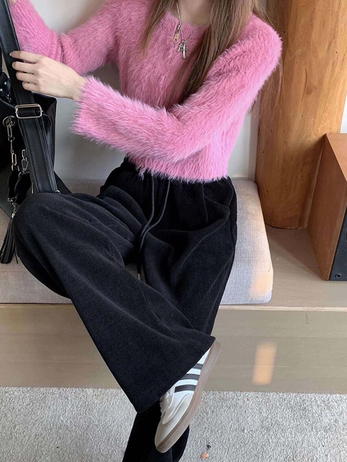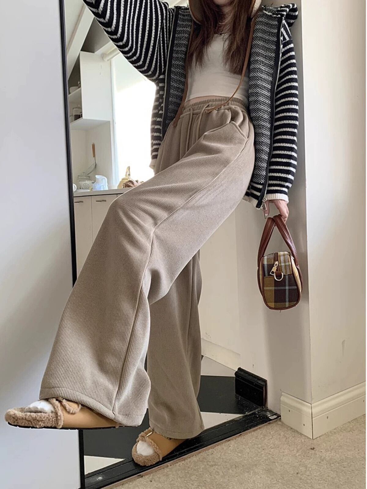 ベルベット肥厚カジュアルパンツ秋と冬 2023 新スタイル怠惰なスタイル弾性ウエスト巾着痩身ストレートワイドレッグパンツ女性 エラスティック 伸縮 オータム 秋物 ウィンター 冬物 ワイドパンツ missk7664265877
