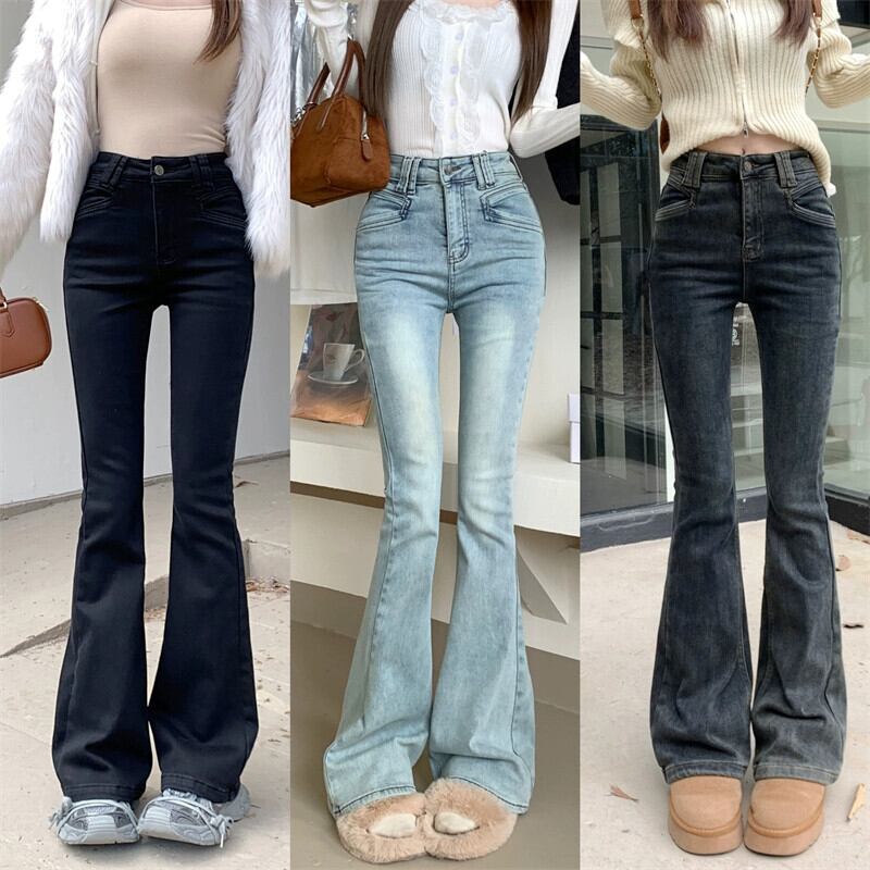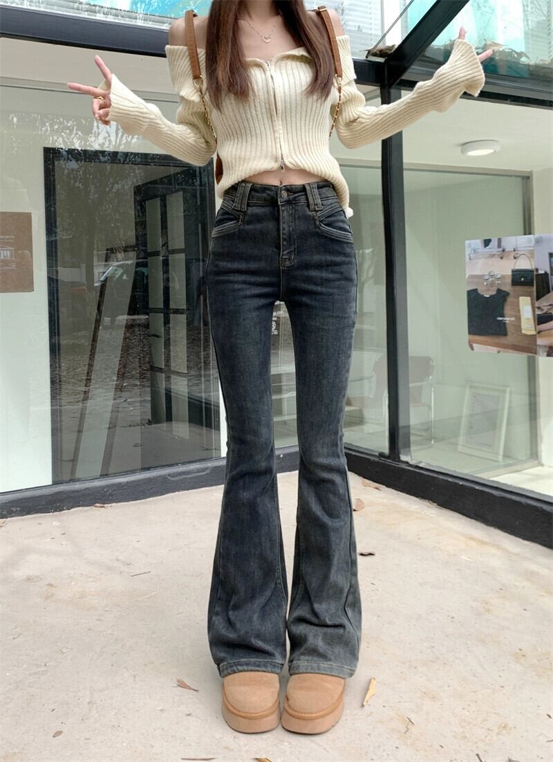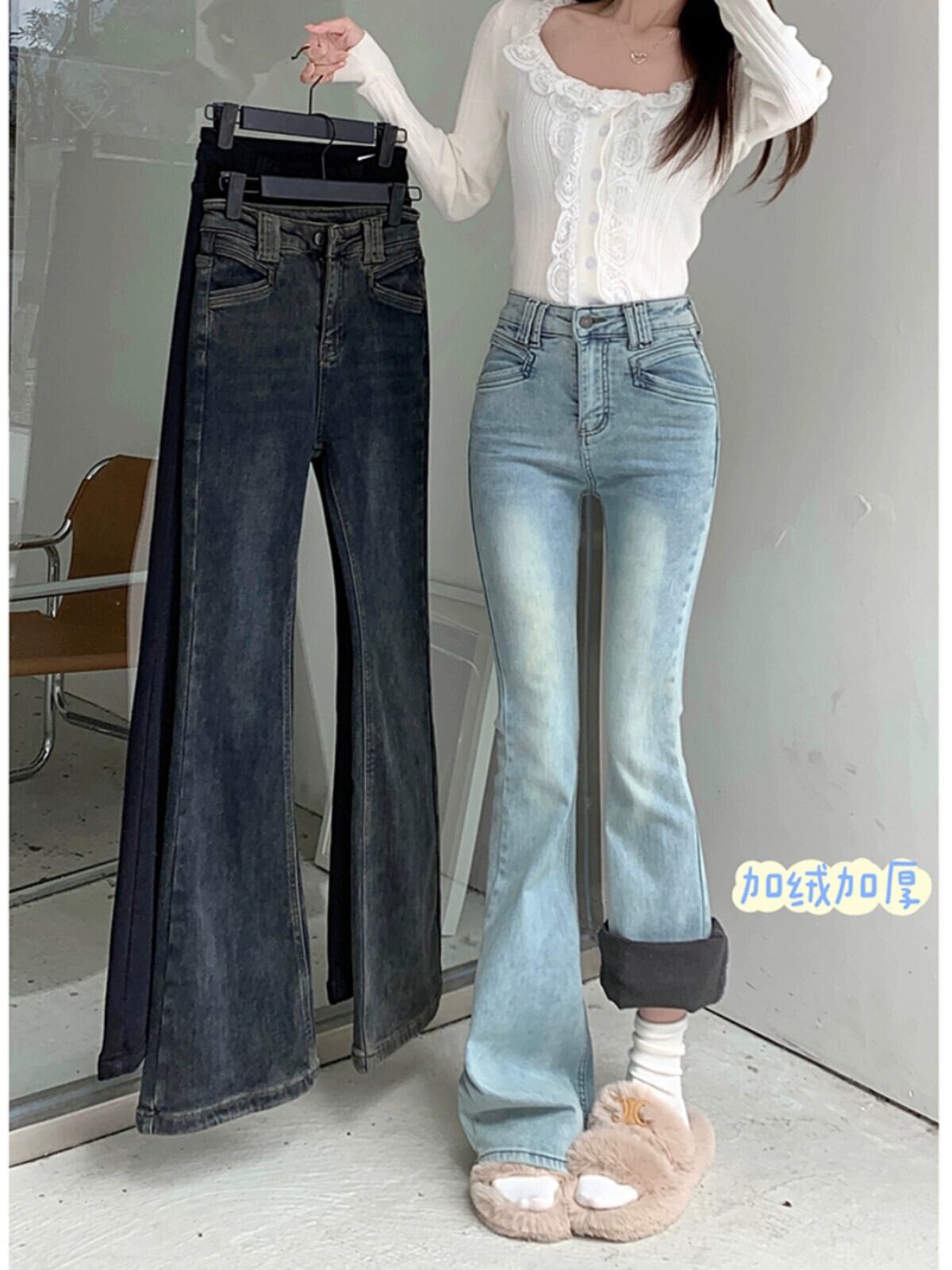 フレンチベルベット肥厚ブーツカットジーンズ女性秋と冬2023新しいレトロなファッション気質多用途ハイウエストパンツ オータム 秋物 ウィンター 冬物 missk37562562978