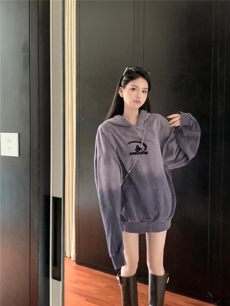 ベビーベルベットグラデーションカラーフード付きスウェットシャツレディース秋冬2023新デザイン厚みのあるミドル丈コートトップ オータム 秋物 ウィンター 冬物 missk78659638665