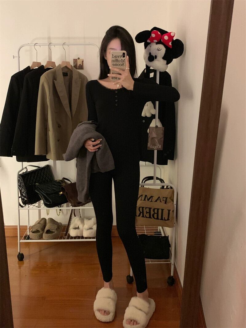 レースレースピットストリップ痩身と暖かい底長袖秋服と秋パンツ女性秋冬 2023 新作 2 点セット ロング オータム 秋物 ウィンター 冬物 missk26772122063