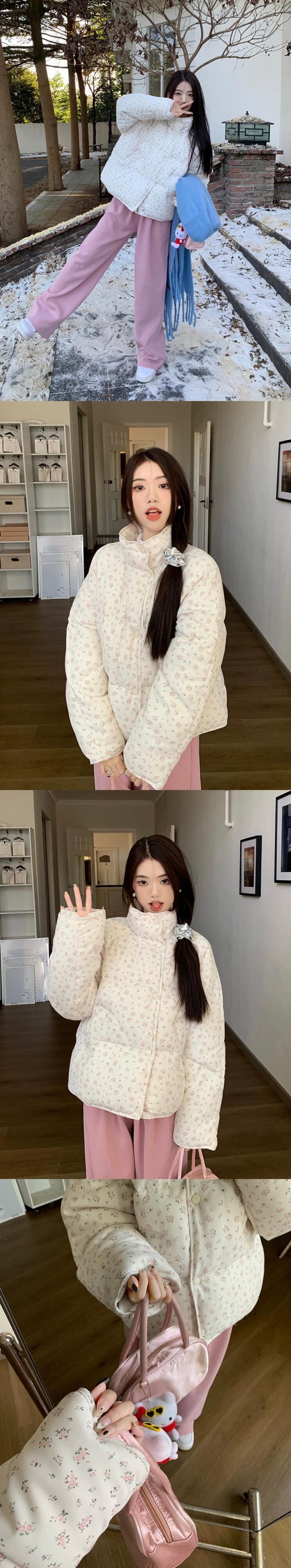 肥厚スタンドアップカラー花柄綿パッドジャケットトップ女性の秋と冬の新しい甘いデザイン綿パッドジャケット花柄綿パッドジャケット コットン 大人ガーリー スウィート キュート カジュアル オータム 秋物 ウィンター 冬物 missk4118188068
