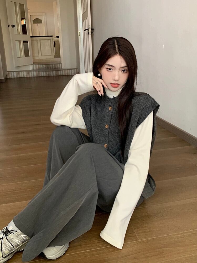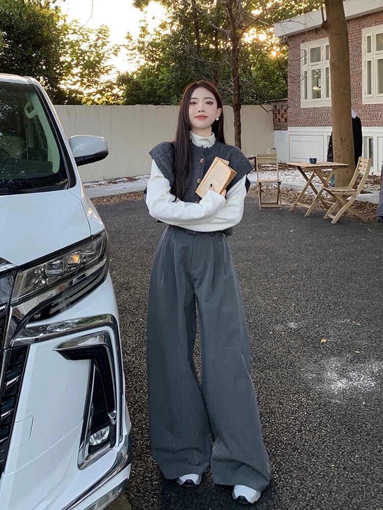 塩ベースのハイエンド不規則な積み重ねニットベストとドレープワイドレッグロングパンツ秋と冬の新しいファッションスーツ女性 オータム 秋物 ウィンター 冬物 missk71818489033