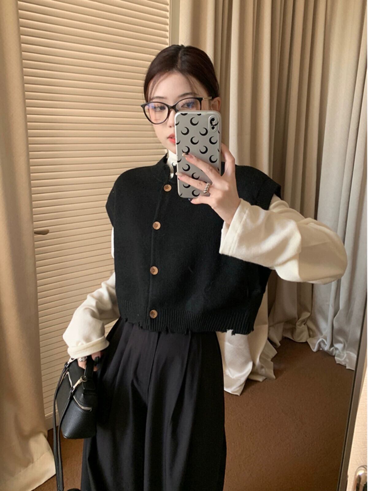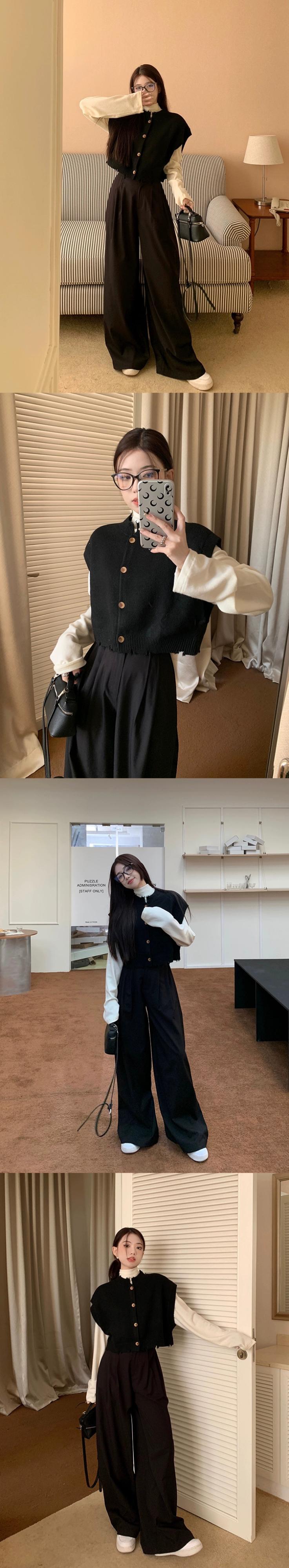 色:グレーパンツ,グレーのベスト,ホワイトボトミングシャツ,黒のベスト,黒いズボン