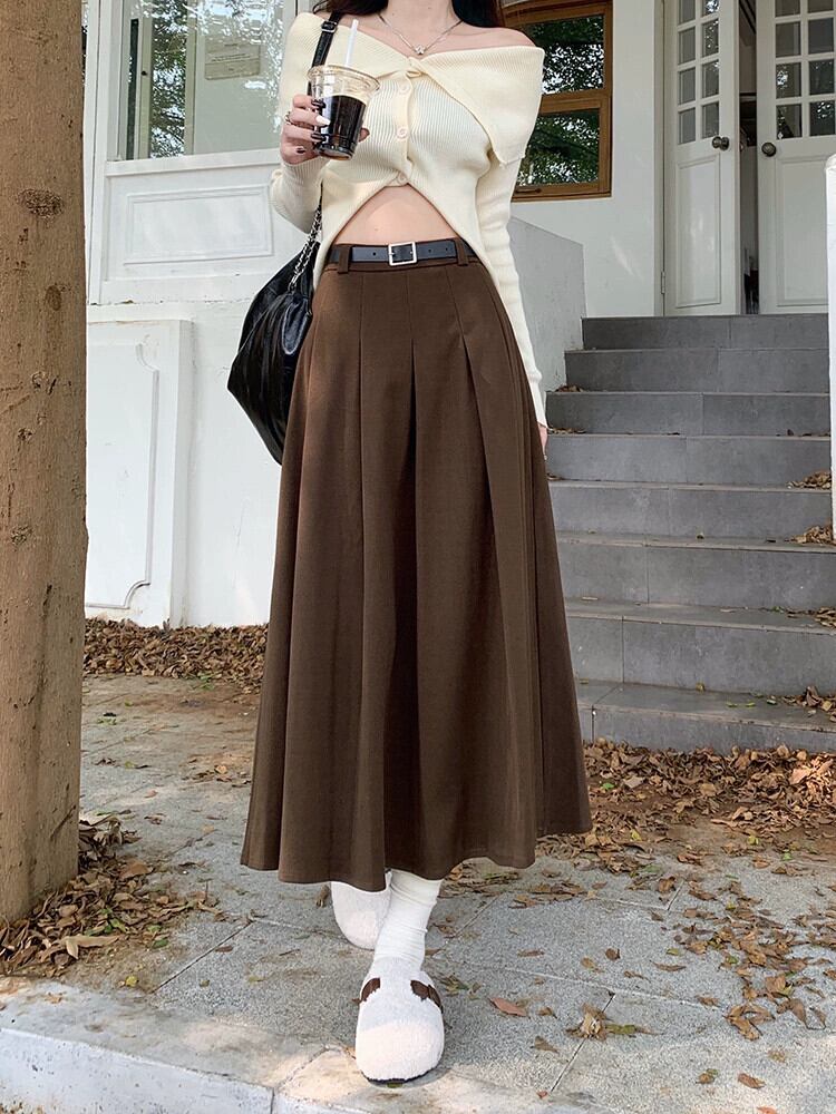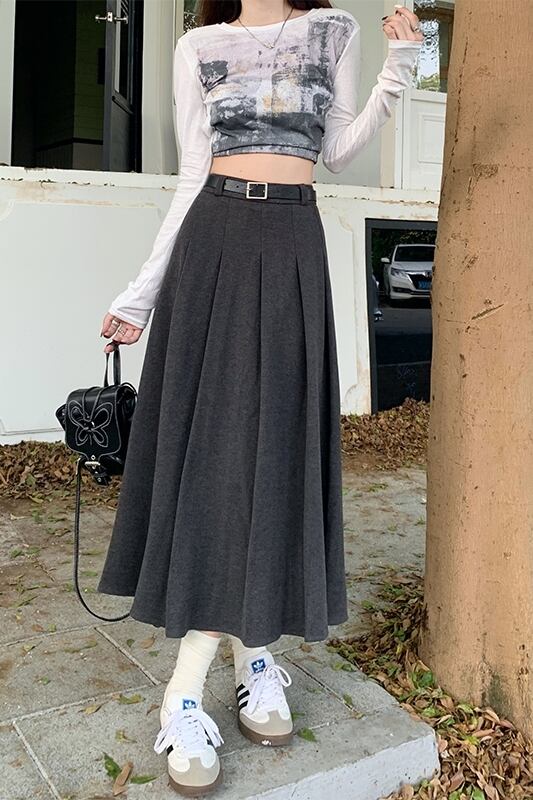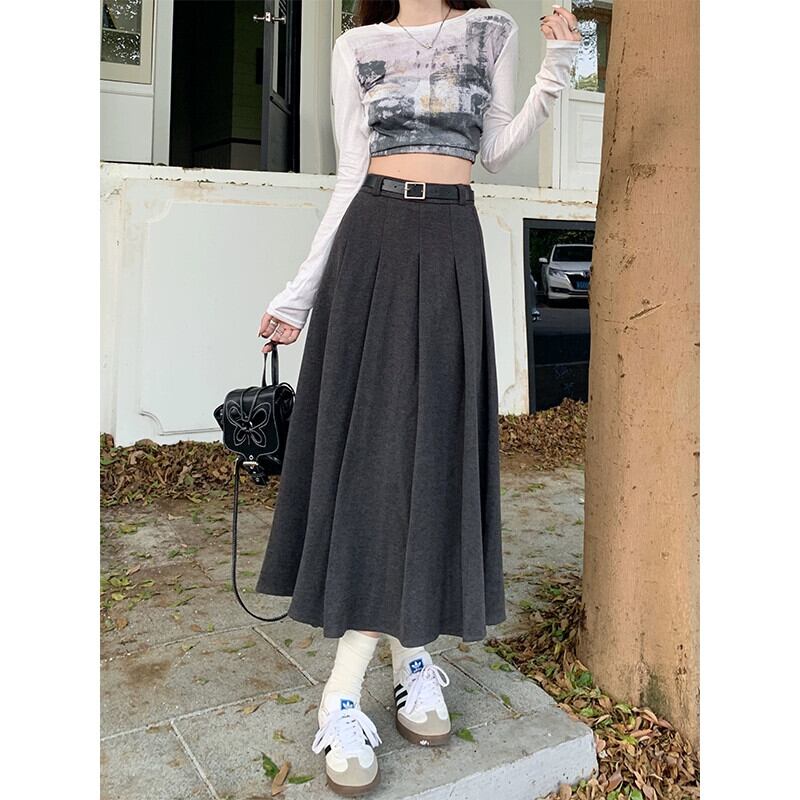ウールプリーツスカートレディース秋冬バージョン 2023 新しいハイウエスト痩身股カバーミッドレングス A ラインスカートイン オータム 秋物 ウィンター 冬物 Aライン missk39961882469