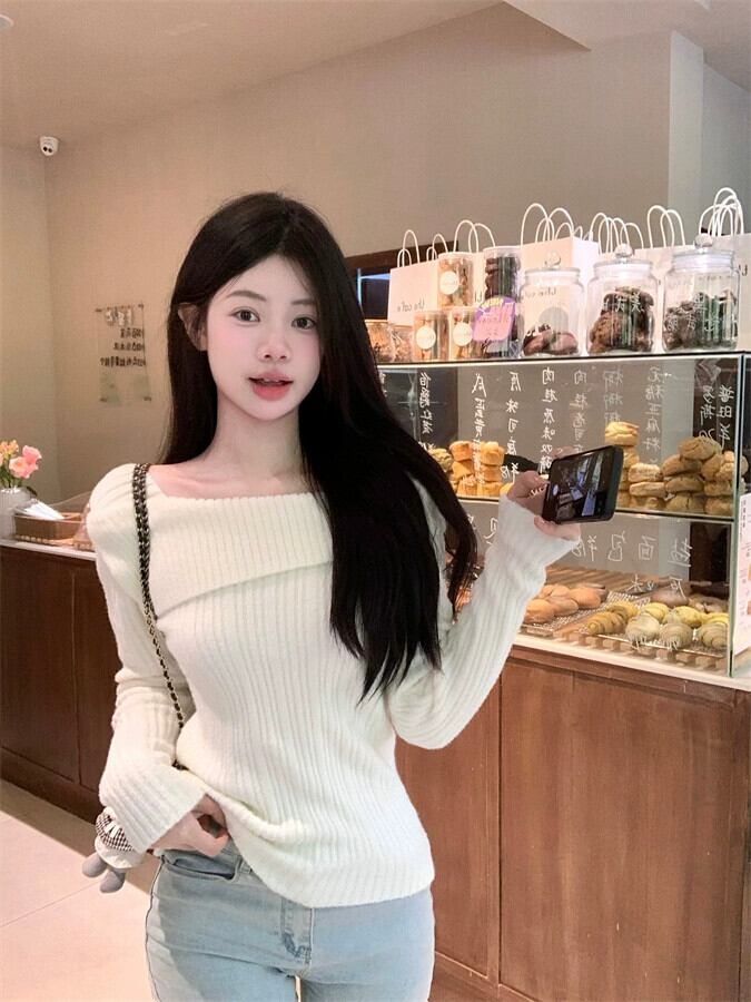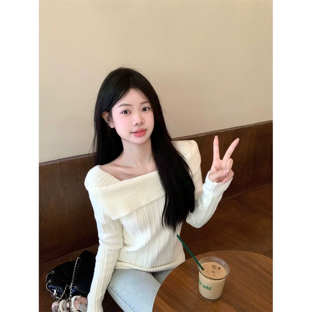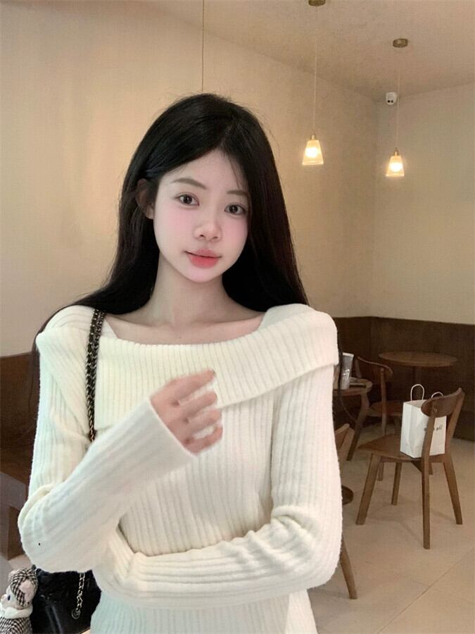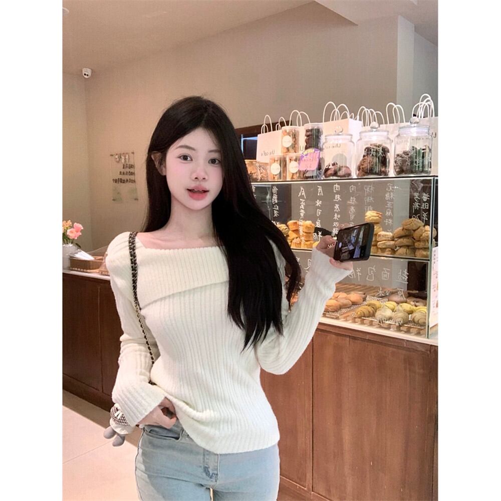 フランス鎖骨長袖セーター女性秋冬 2023 新デザインニッチ痩身とシックなボトリングシャツ ロング オータム 秋物 ウィンター 冬物 missk90311577951