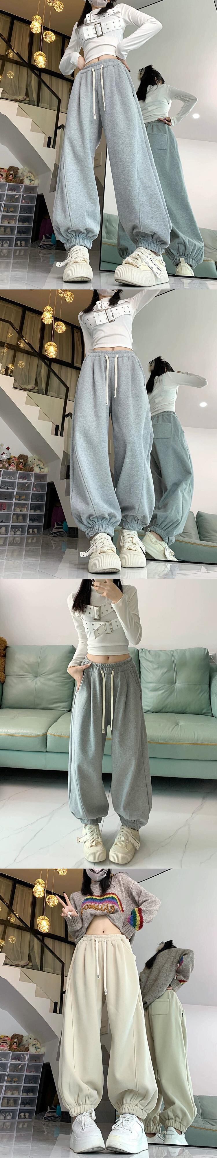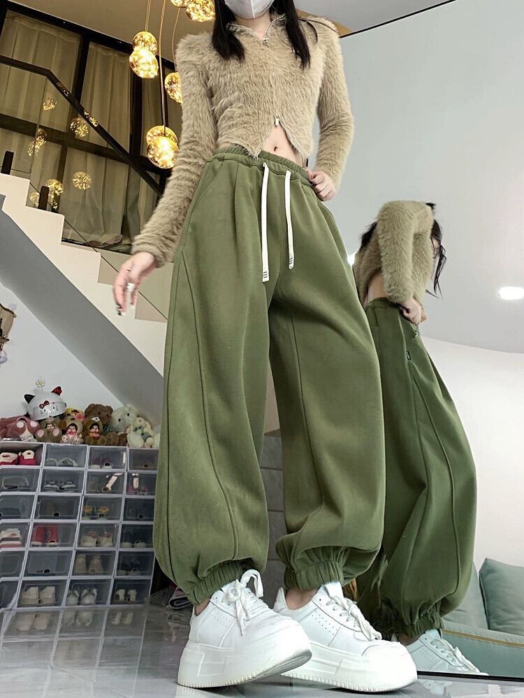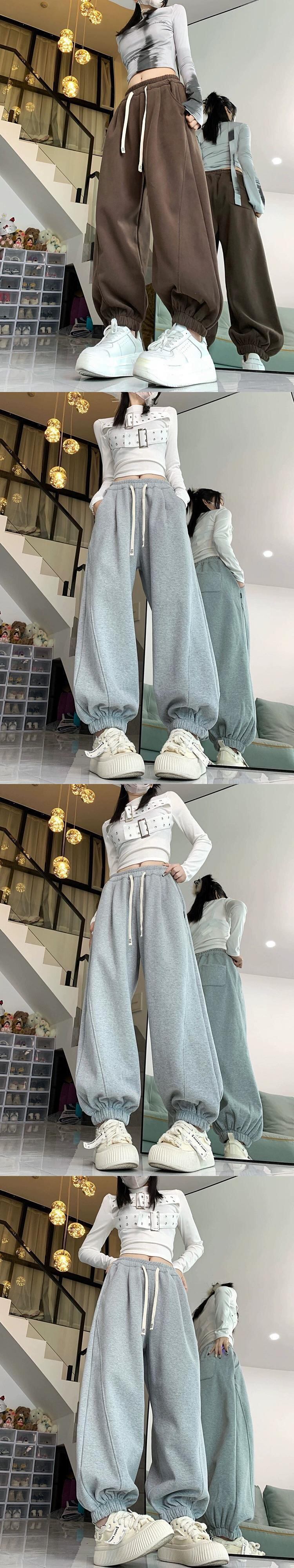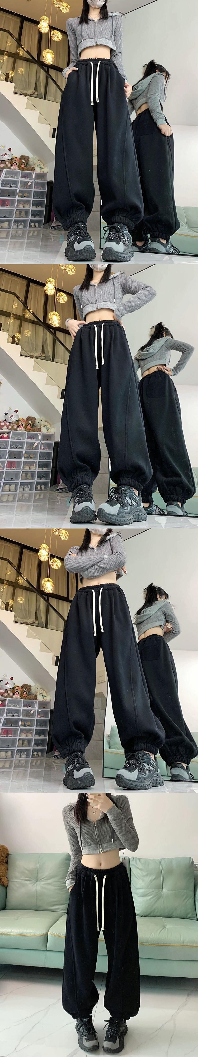 厚みのあるオーストリアのベルベットスポーツパンツ冬 2023 新しいスタイルハイウエストと痩身レッグウォーマールーズカジュアルパンツトレンディ ウィンター 冬物 missk3786054698