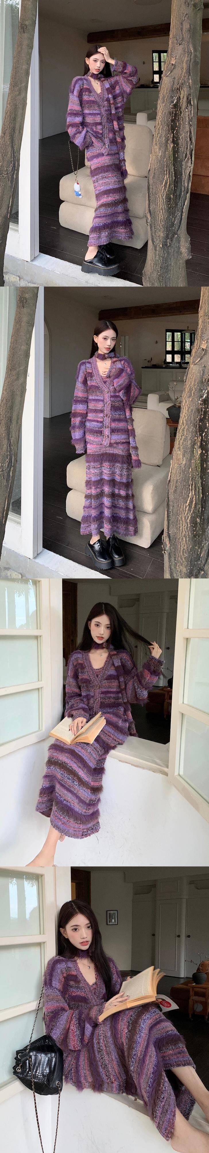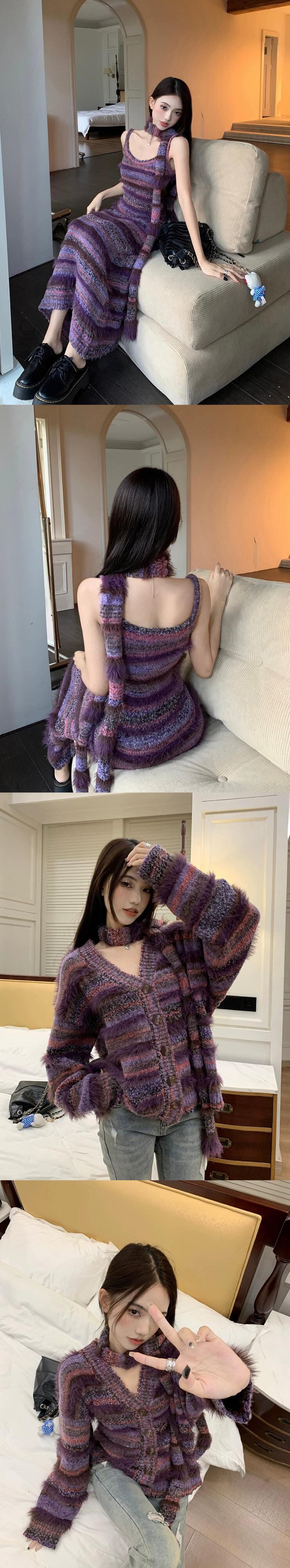 色:ストライプハイビスカスパープルドレス,ストライプハイビスカスパープルショートカーディガン,ストライプハイビスカスパープルレギュラーフィットカーディガン,スカーフ