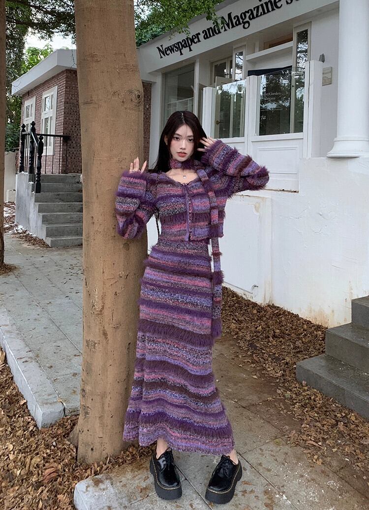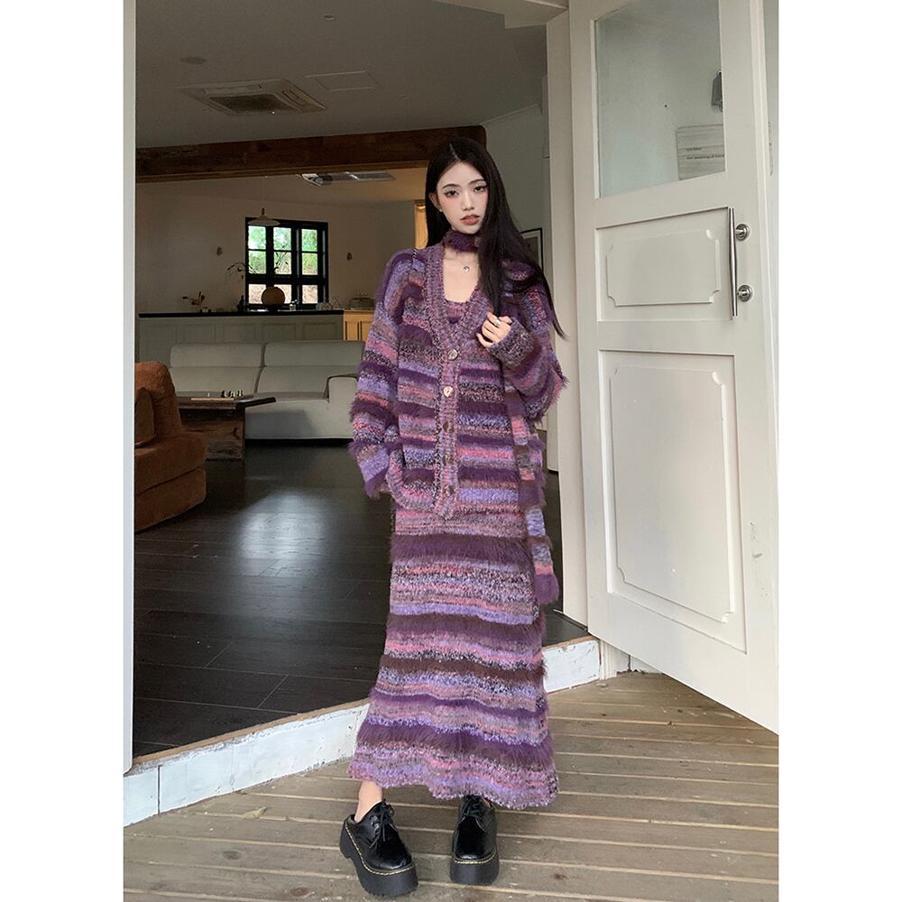 フレンチレトロストライプテル長袖セータージャケットニットサスペンダードレス女性の秋冬 2023 新しいスーツ ロング オータム 秋物 ウィンター 冬物 missk37838670352