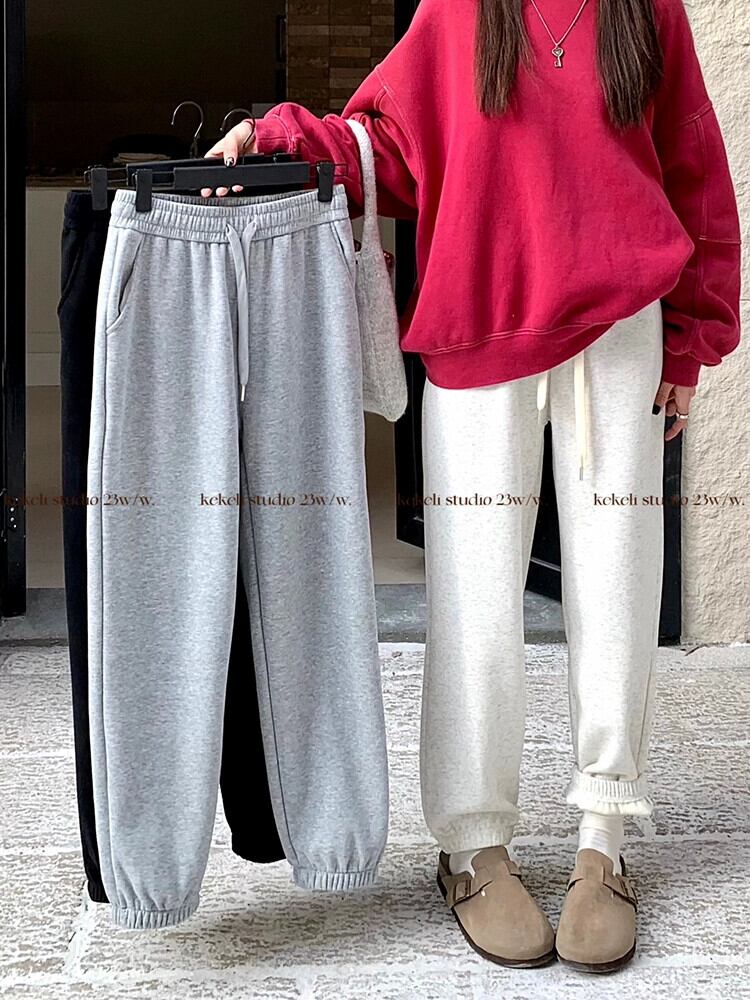 ミンクベルベットスウェットパンツ女性の秋冬 2023 新しいグレーベルベット肥厚巾着カジュアルパンツストレートレッグレギンス オータム 秋物 ウィンター 冬物 missk55389179877
