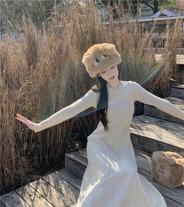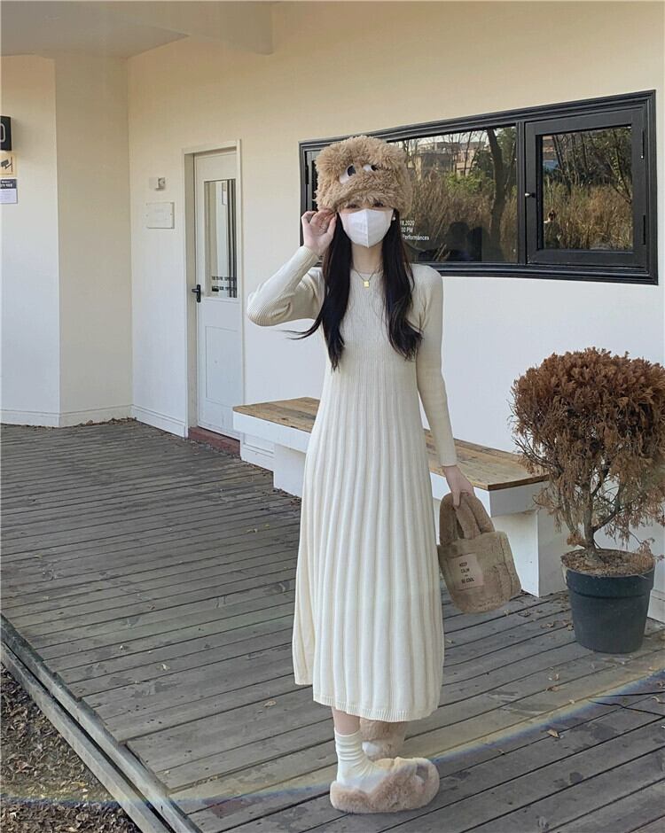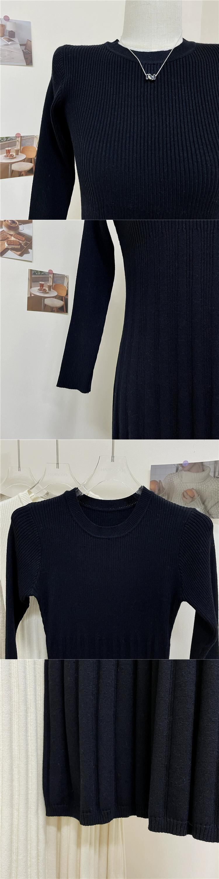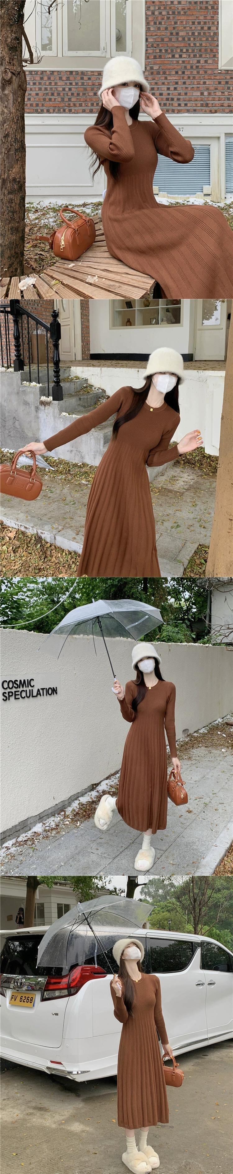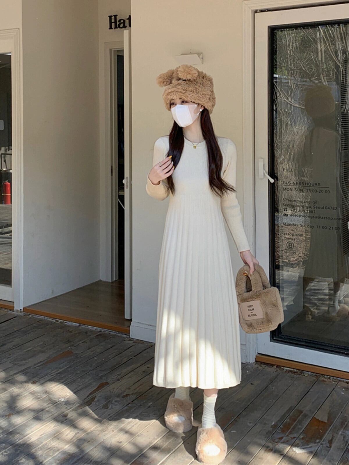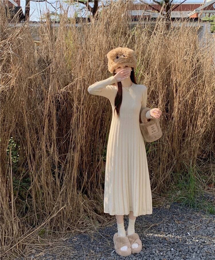 プリーツニット長袖ドレスの女性の秋と冬 2023 新しいフレンチスタイルウエスト痩身ミッドレングスボトスカート ロング オータム 秋物 ウィンター 冬物 missk79114893862