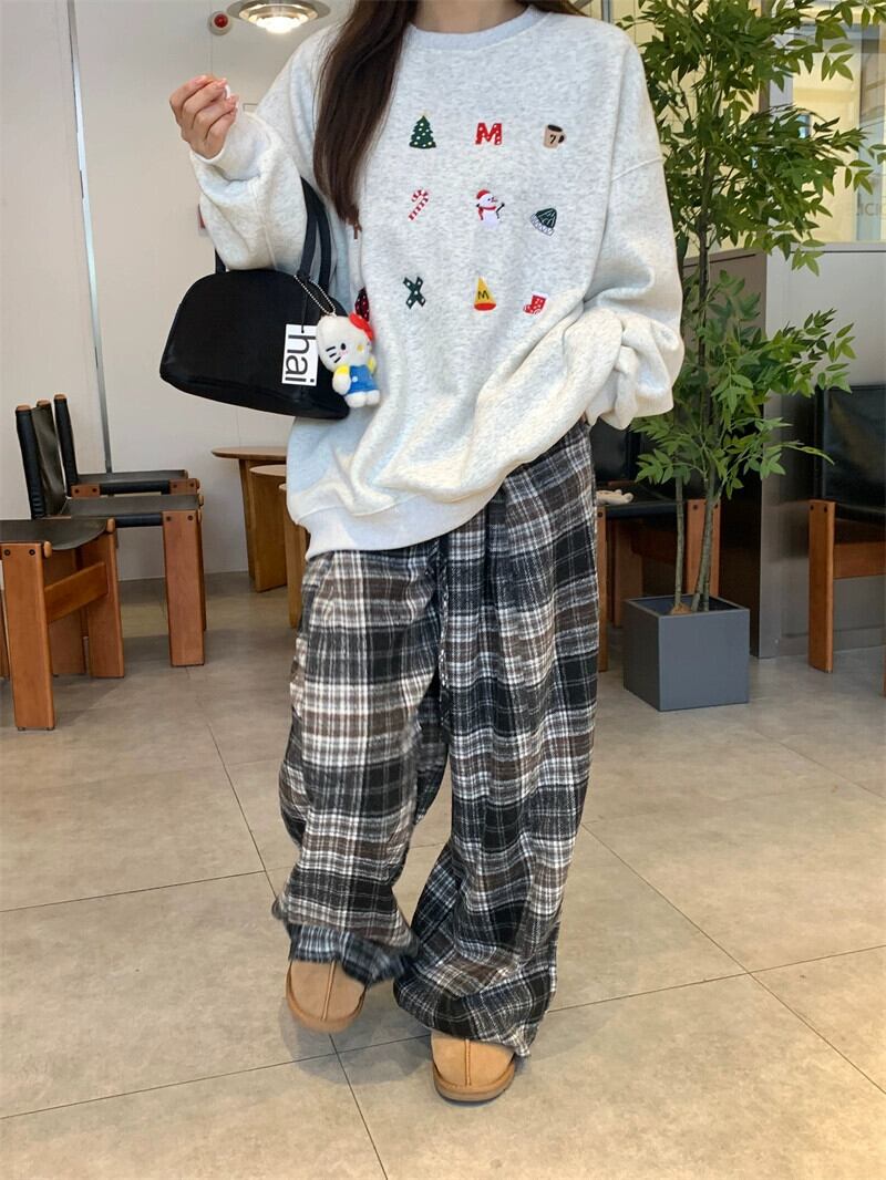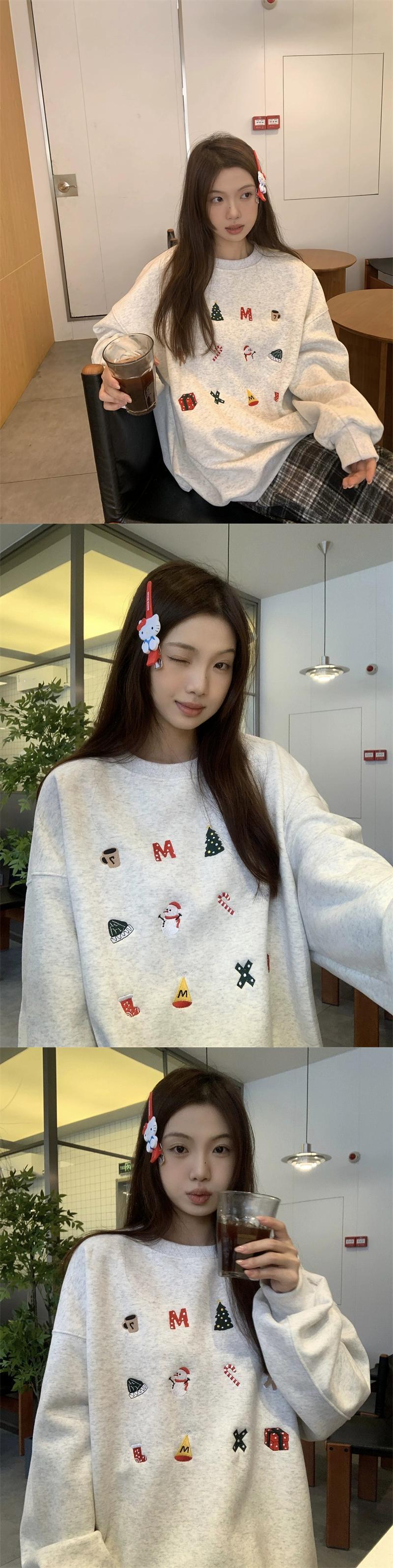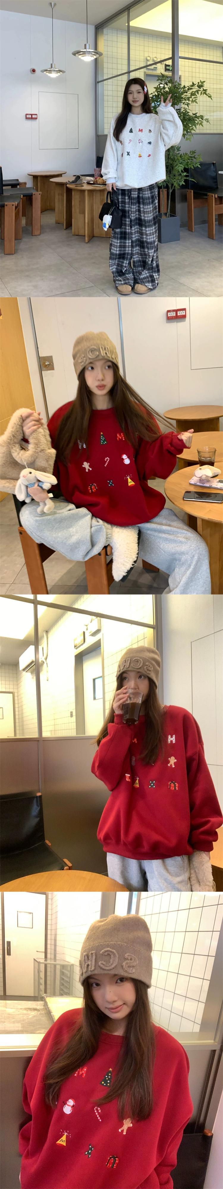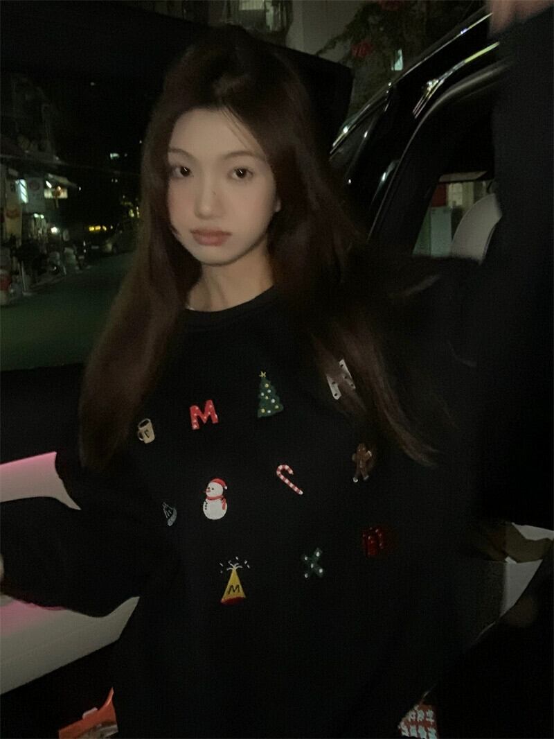 クリスマスレッドトレーナーベルベット肥厚女性の秋冬バージョン2023新しい刺繍ルーズプルオーバー長袖トップ ロング オータム 秋物 ウィンター 冬物 missk42263267257