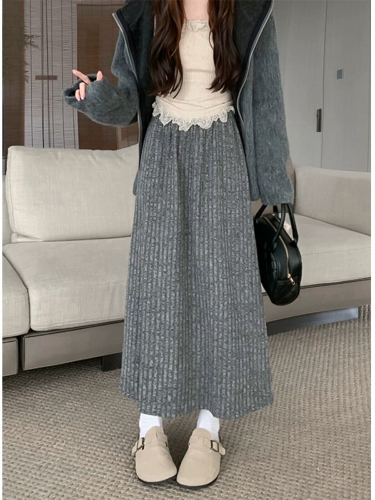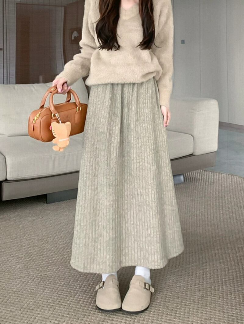 ベルベット厚みのあるスカートの女性の秋冬バージョン 2023 新しいハイウエスト痩身ミッドレングス大きな裾 A ラインスカートイン オータム 秋物 ウィンター 冬物 Aライン missk50206469824