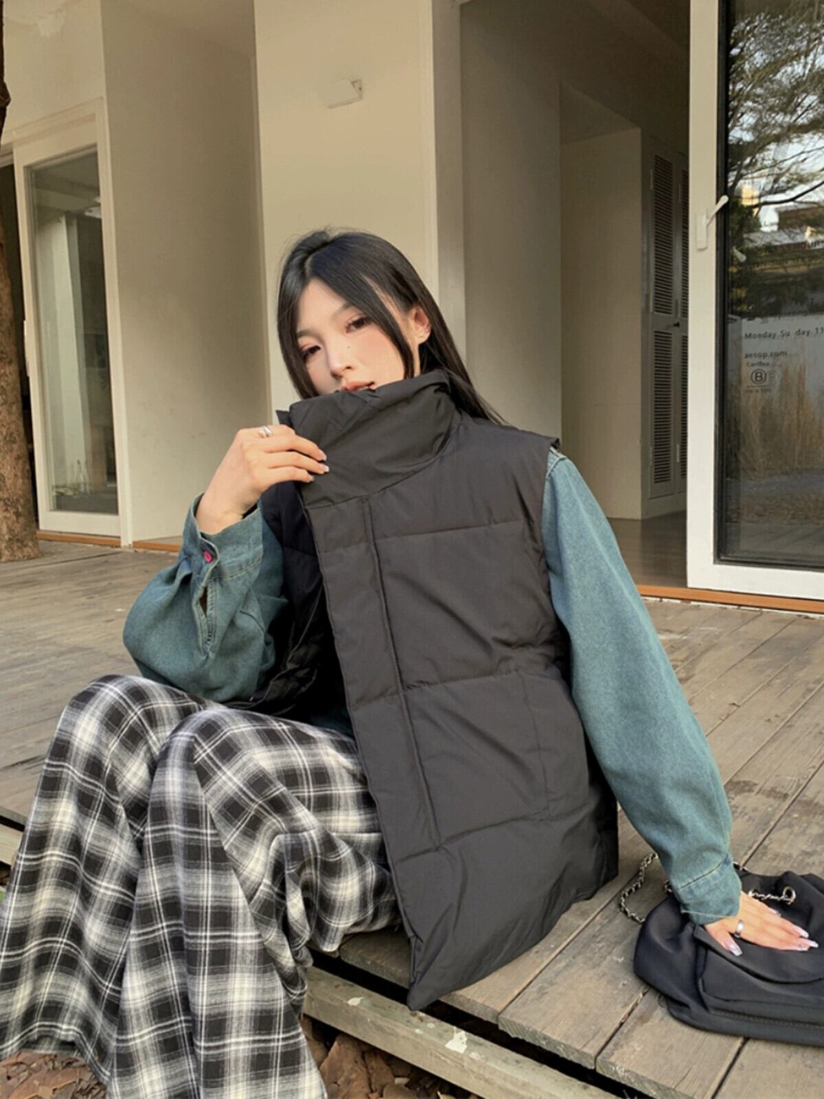 香港スタイルのデザインとベルベットと厚みのあるデニムシャツジャケットと綿のベストの女性の冬の 2023 新しいスーツ コットン ウィンター 冬物 missk53324257892