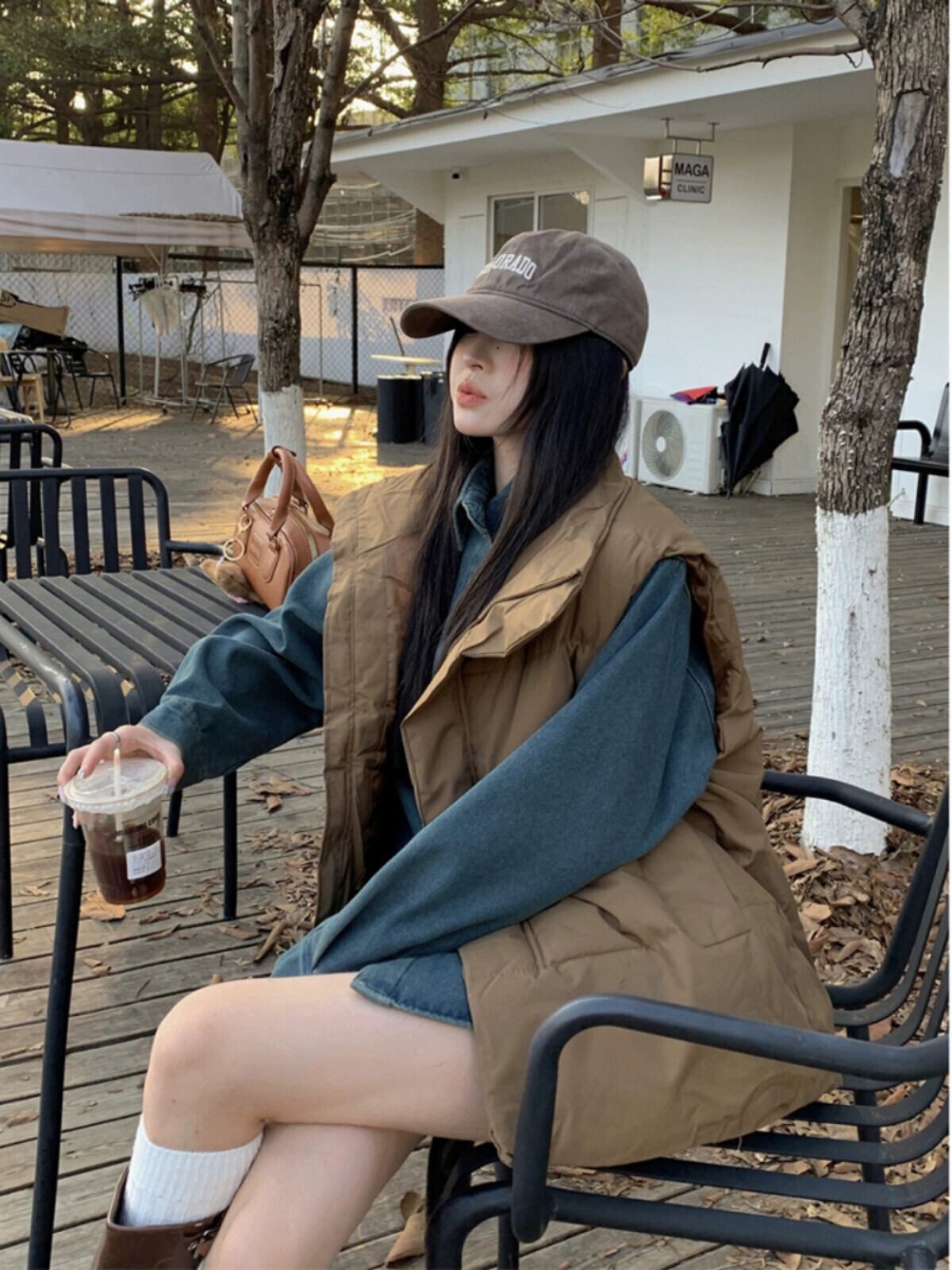 色:レトロブルーシャツ(ベルベット),コーヒーベスト,黒のベスト