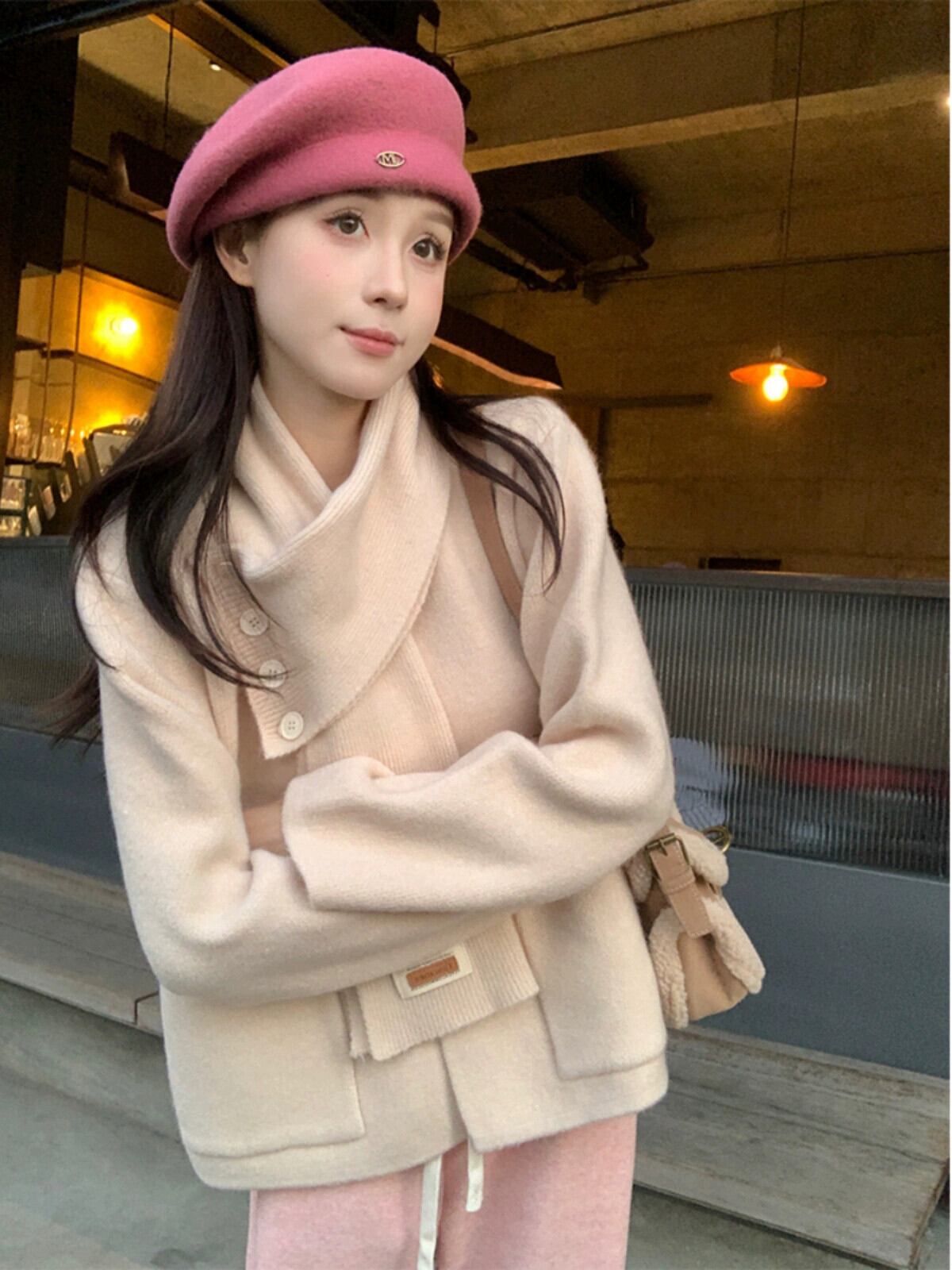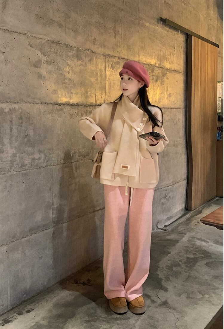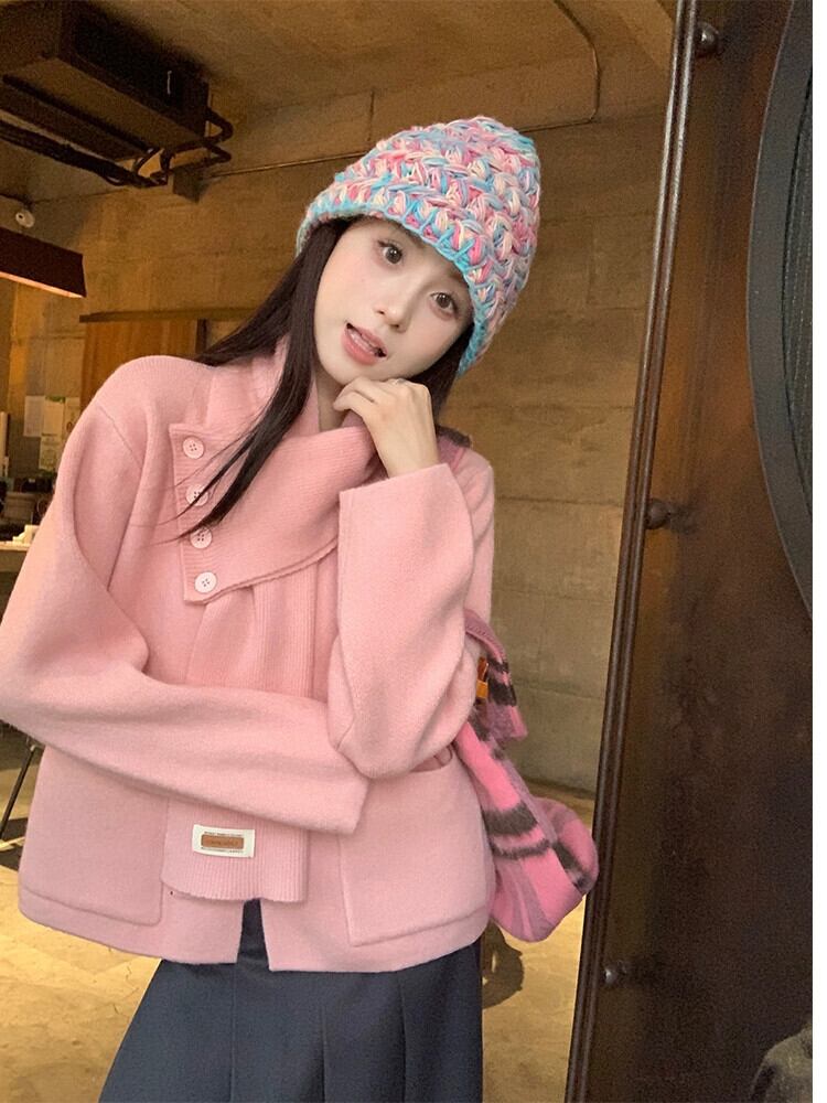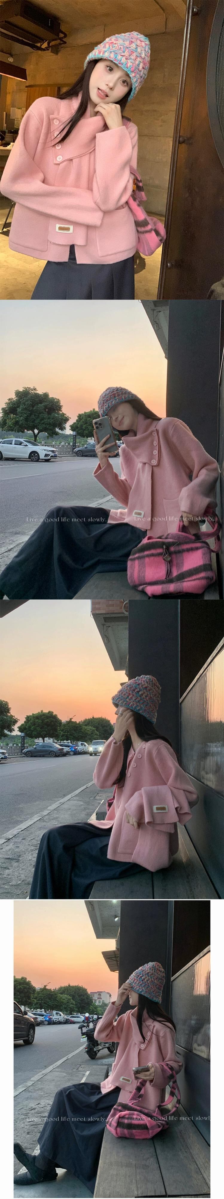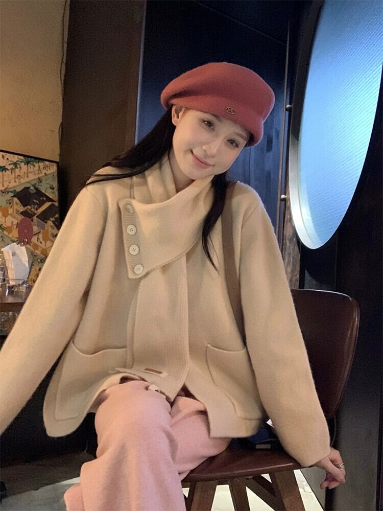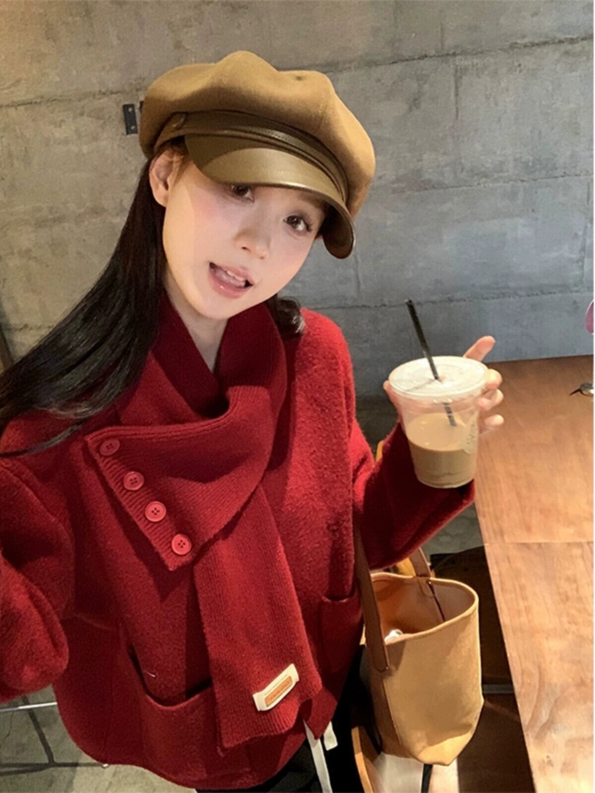 秋と冬のシックなニットセーターの女性の新しいソフトでワックス状のクリスマスレッドの美しくスタイリッシュな長袖トップ+スカーフ ロング オータム 秋物 ウィンター 冬物 missk90786907205