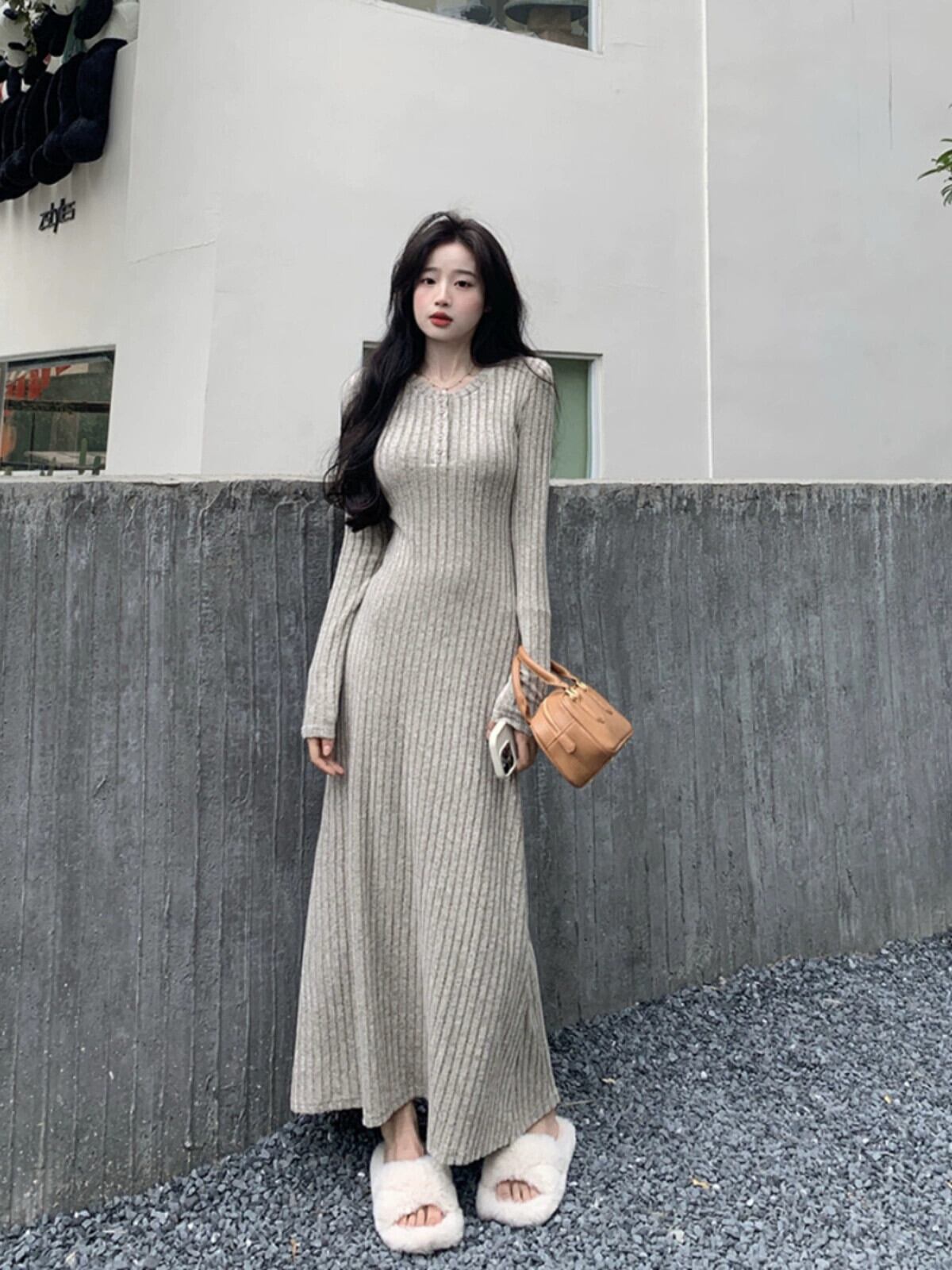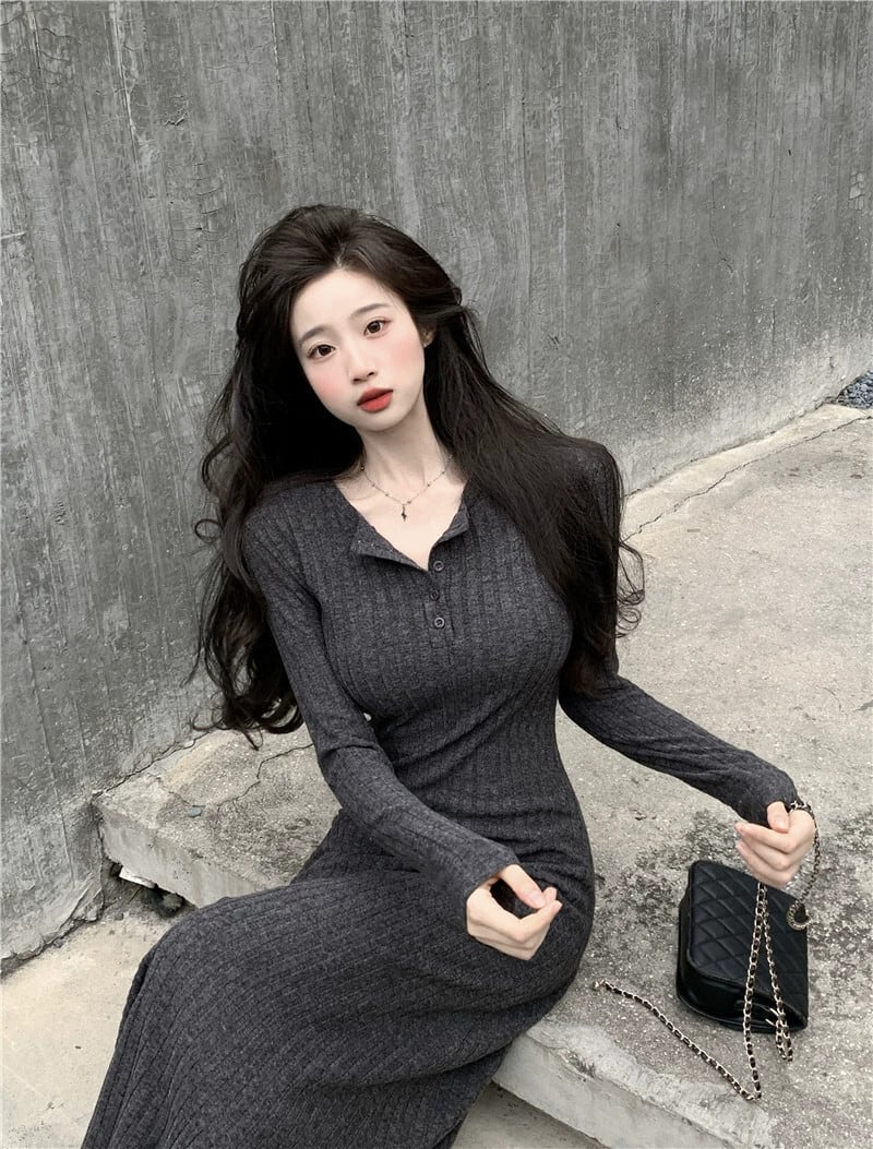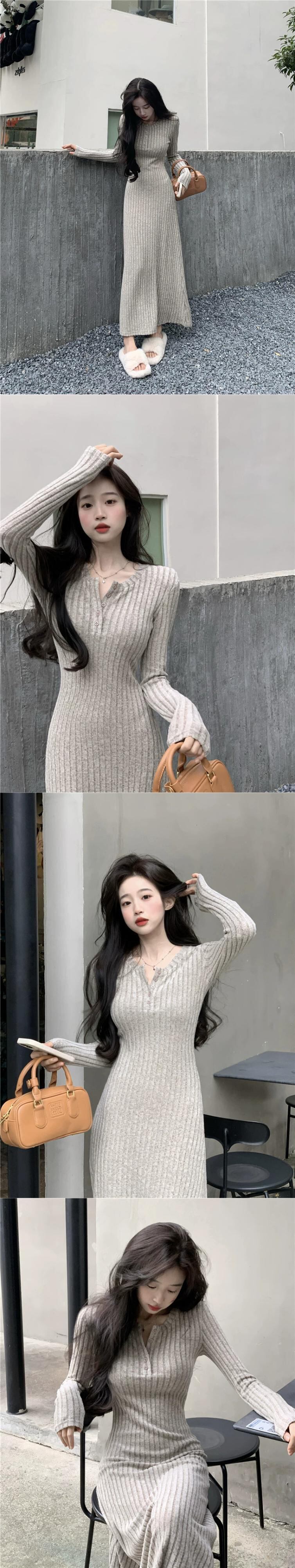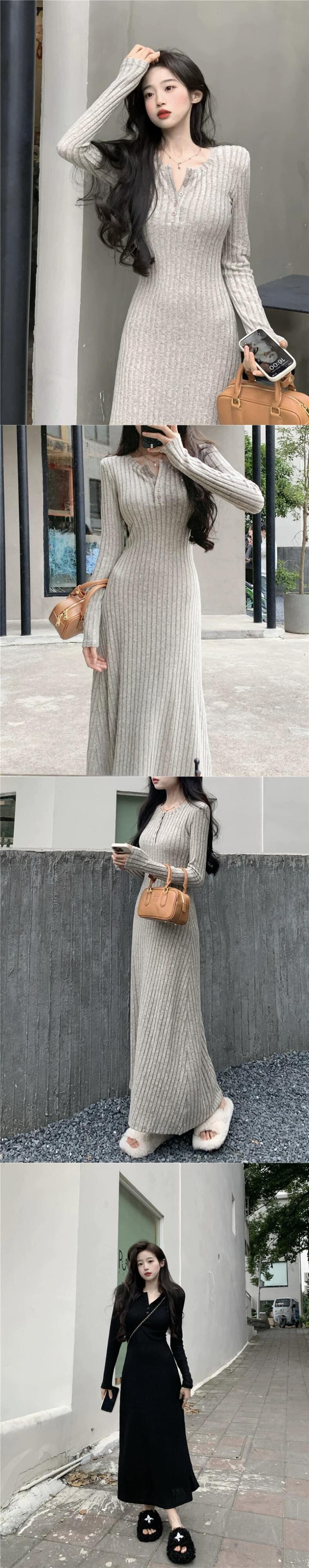 フレンチニットドレスの女性の秋と冬 2023 新しいスタイルラペルウエスト痩身ミッドレングス長袖ボトスカート ロング オータム 秋物 ウィンター 冬物 missk43907979698