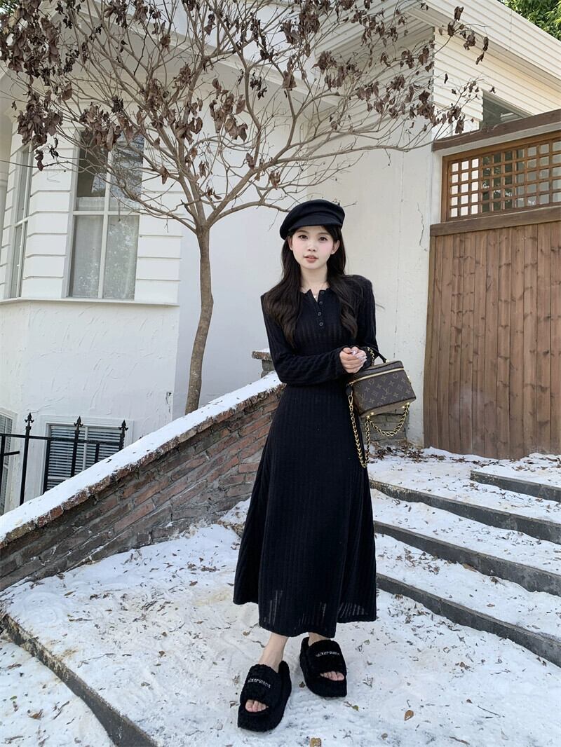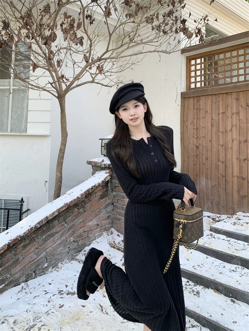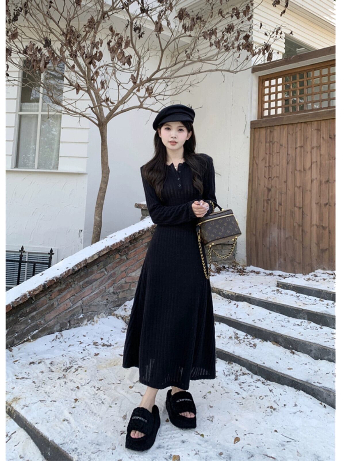 ベルベット肥厚ニットドレス女性の秋冬 2023 新しいウエスト痩身ミッドレングススカートレイヤードボトスカート レッド オータム 秋物 ウィンター 冬物 missk46693825685