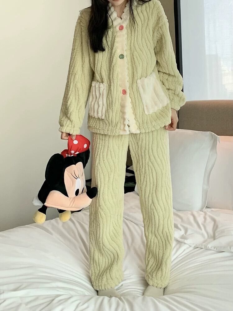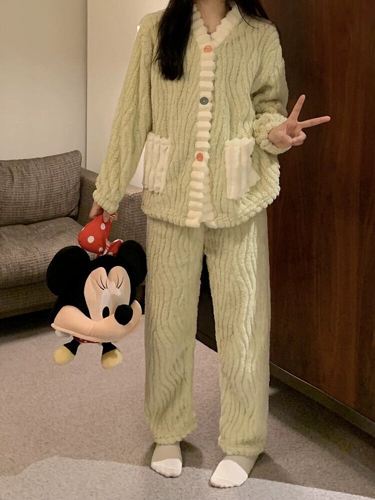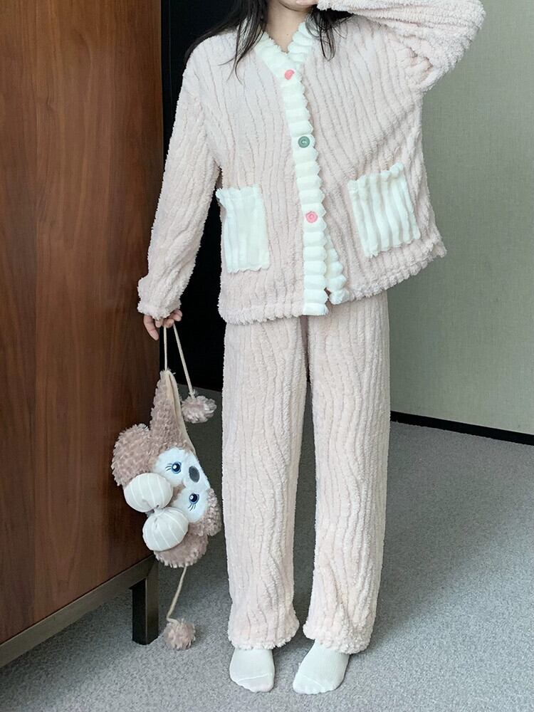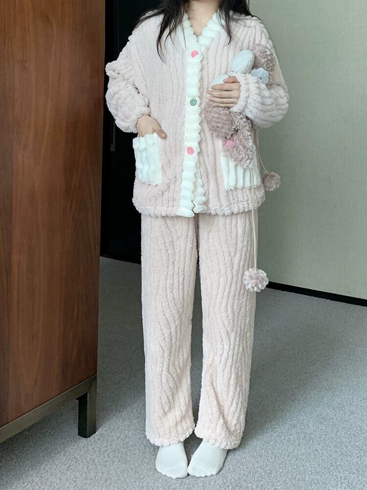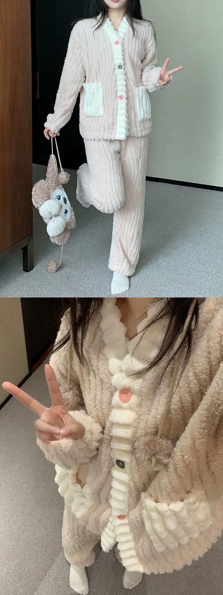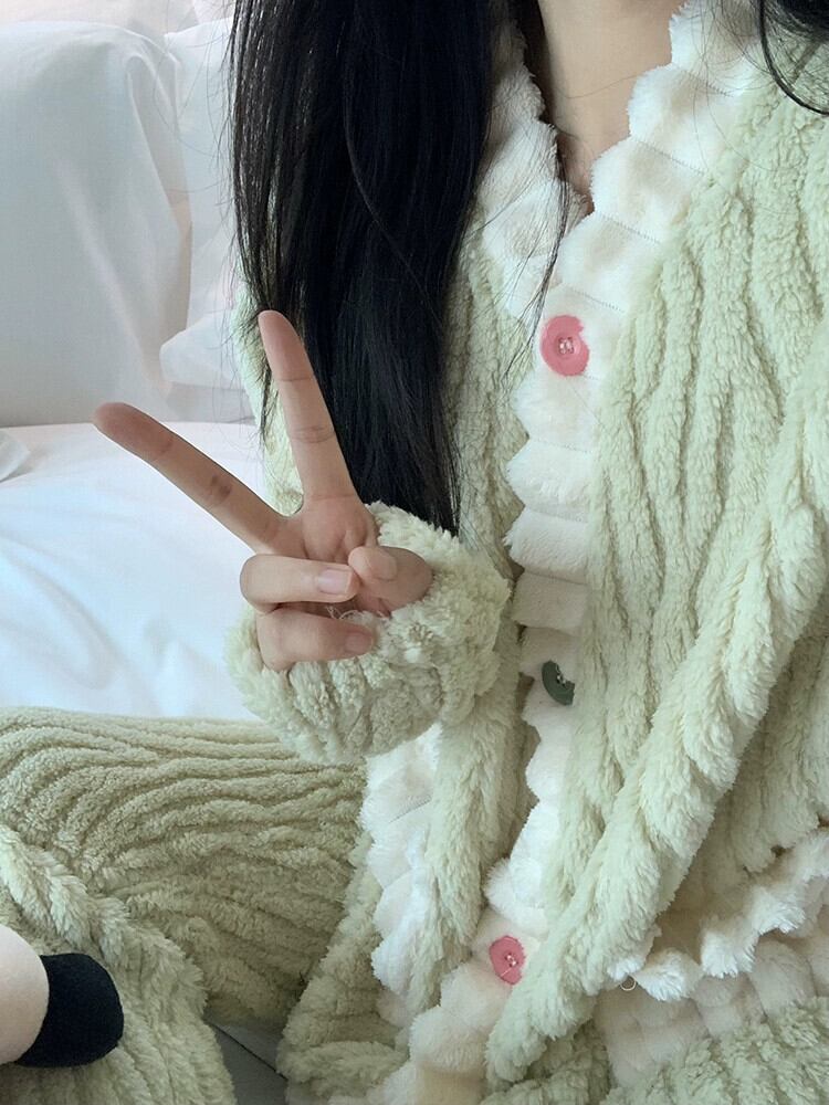 毛皮で覆われた、甘い、厚くて暖かいデザインのコーラルベルベットパジャマ女性の 2023 年秋冬の新しいホームウェア 2 点セット 大人ガーリー スウィート キュート カジュアル オータム 秋物 ウィンター 冬物 missk18089317797