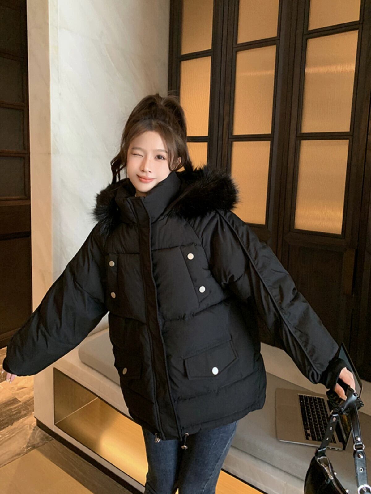 大きな毛皮の襟厚く暖かいパーカージャケット女性の冬バージョン 2023 新しいスタンドカラールーズコットンコート ウィンター 冬物 missk69596039543