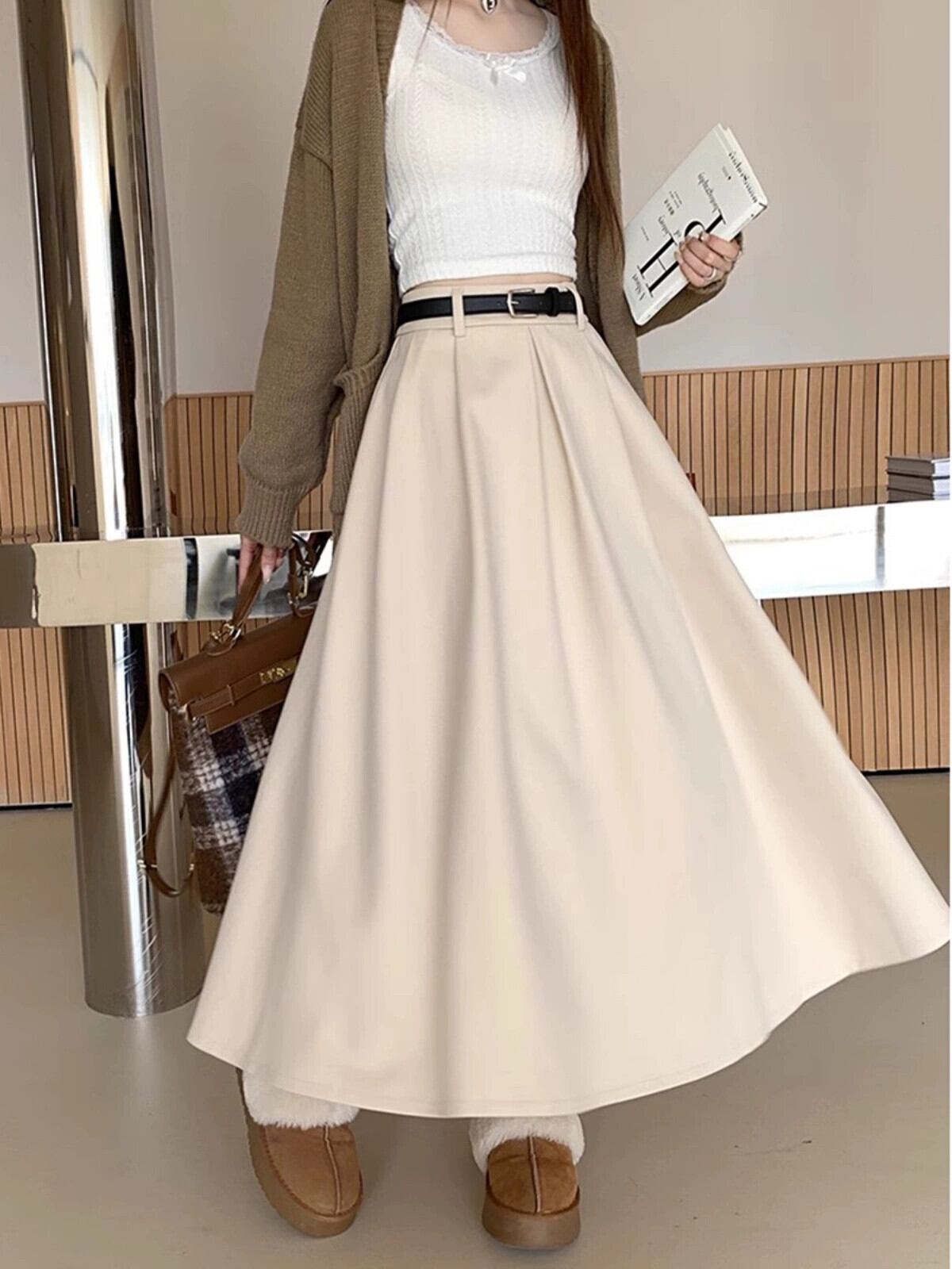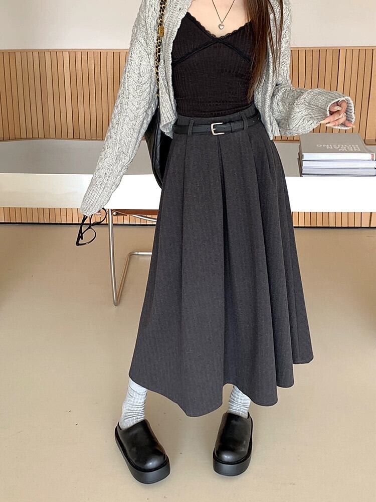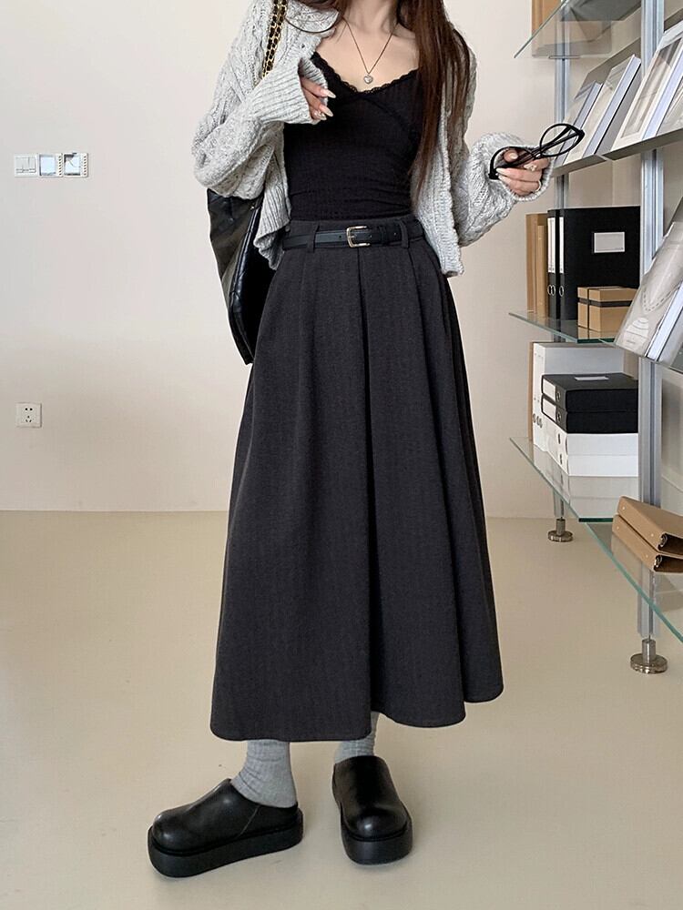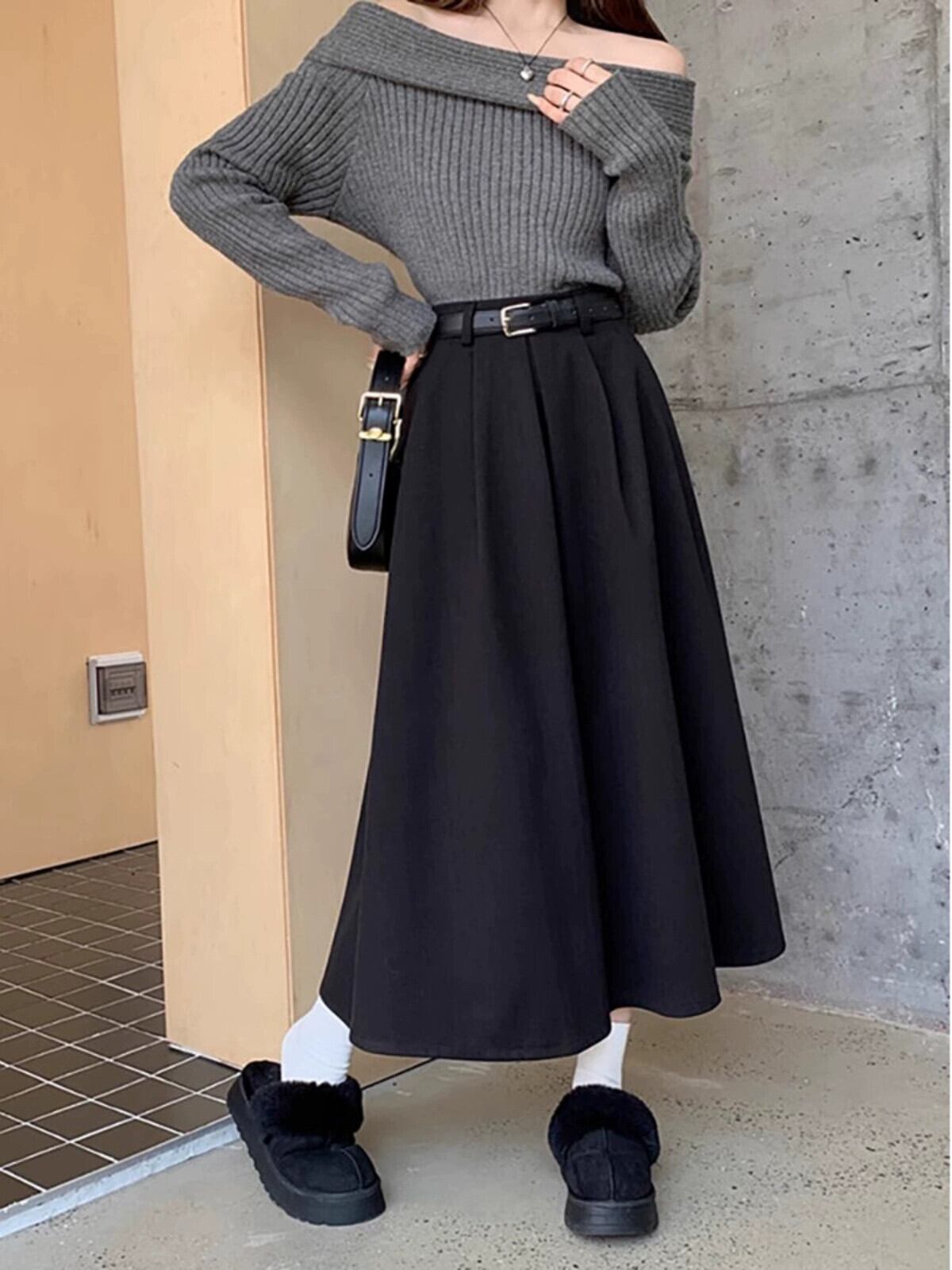 黒スカート秋と冬の新スタイルハイウエストスリムファッションミッドレングススウェットシャツとスカートプリーツ A ラインスカート女性 ハイウェスト ブラック オータム 秋物 ウィンター 冬物 Aライン missk56862332065