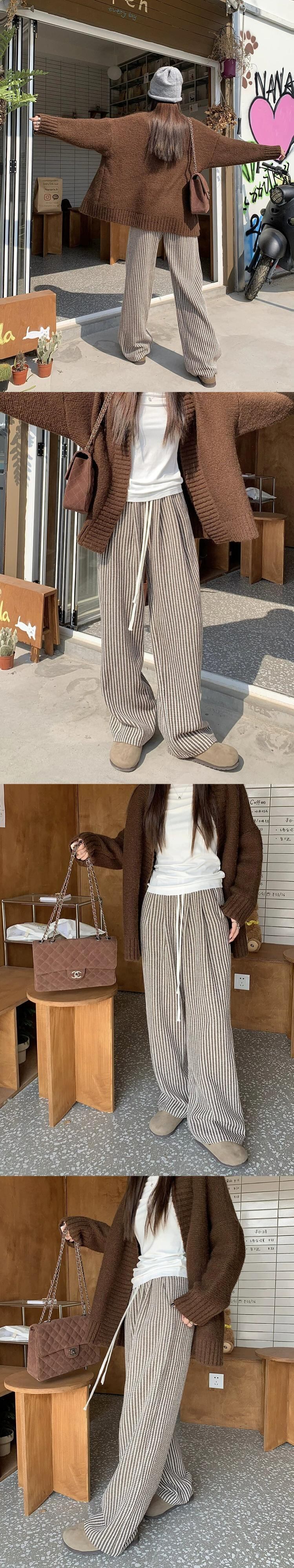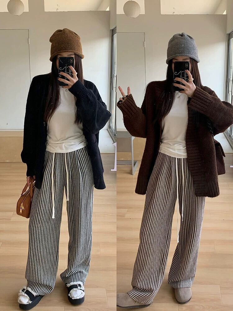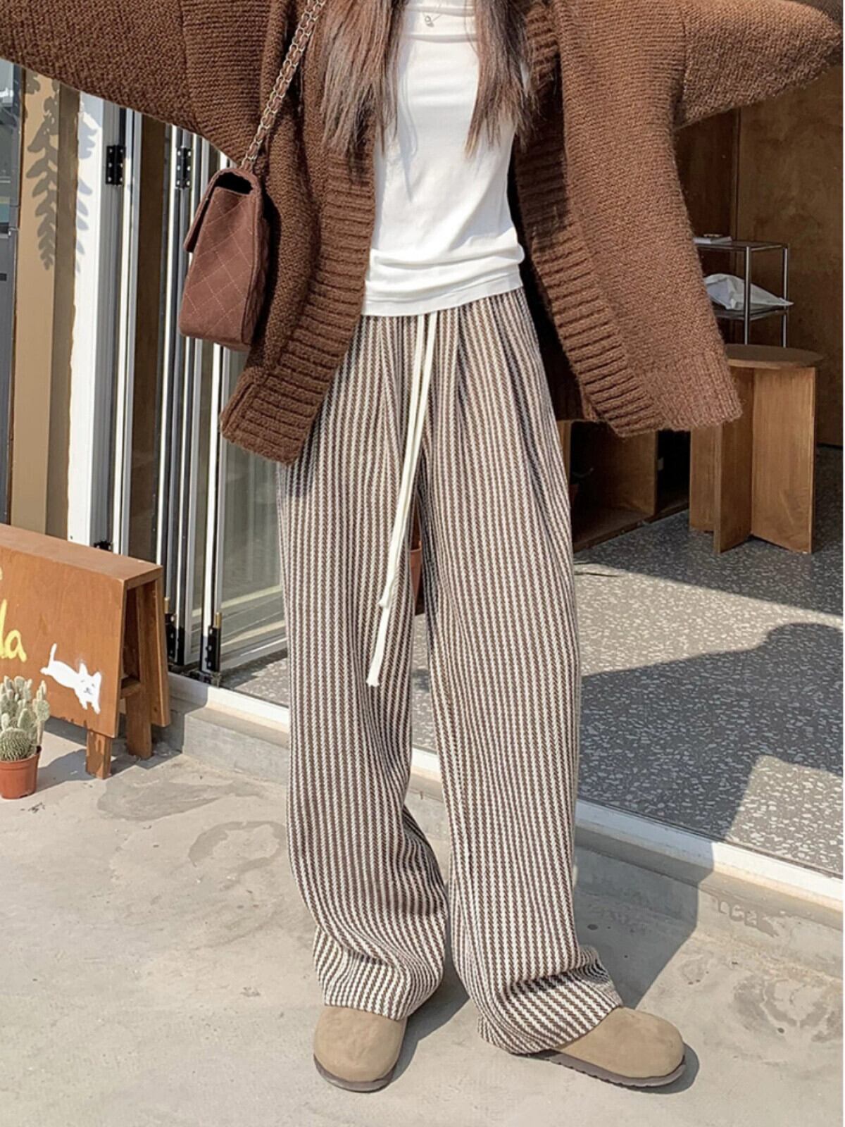 ベルベットと肥厚ブラウンストライプウールコートワイドレッグパンツ女性の秋と冬バージョン 2023 新しいハイウエストカジュアルパンツ オータム 秋物 ウィンター 冬物 missk29386394806