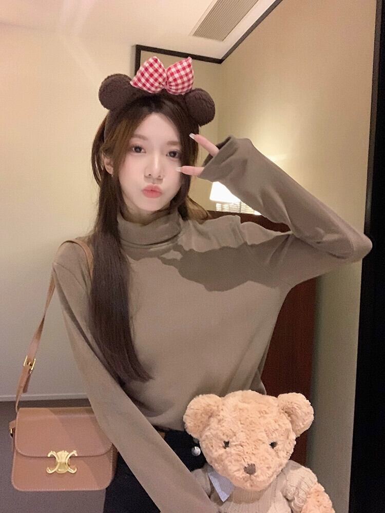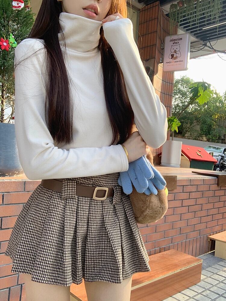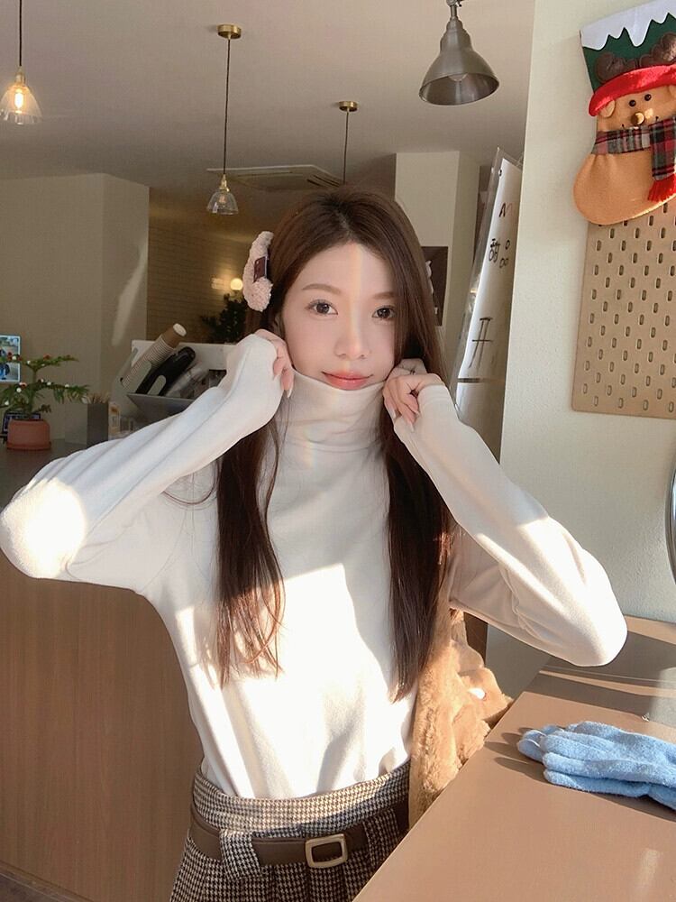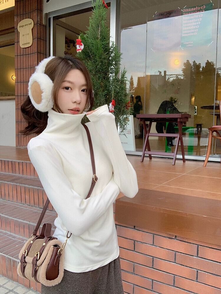 襟肥厚カシミアプロテインボトリングシャツ秋と冬の新しいスタイルプラスベルベット暖かい長袖白 Tシャツインナートップ女性 ロング ホワイト オータム 秋物 ウィンター 冬物 missk78926760985