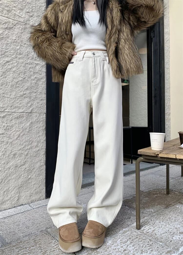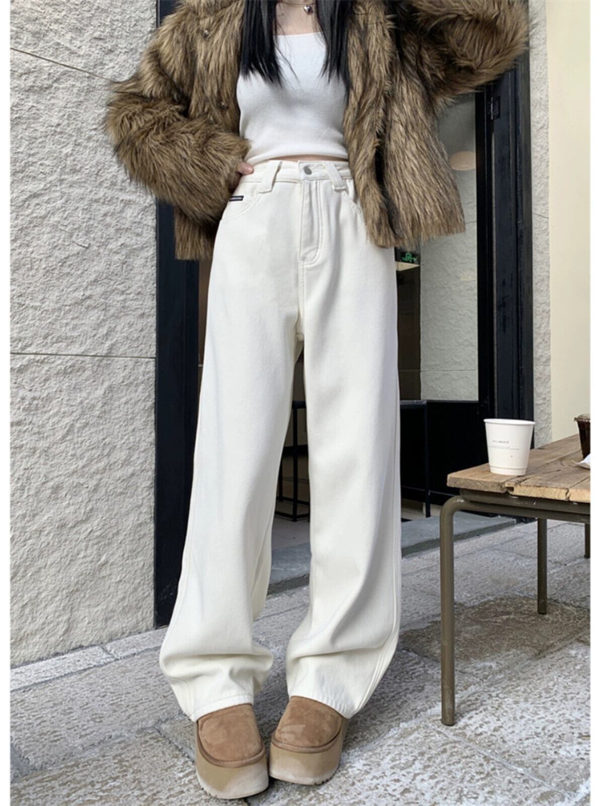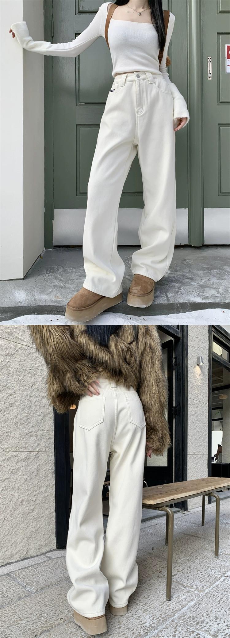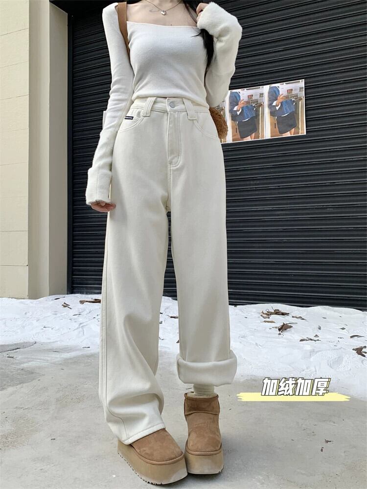 ホワイトベルベットの厚みのあるジーンズの女性、秋冬バージョン2023新しいハイウエストスリムファッション暖かい床までの長さのズボン オータム 秋物 ウィンター 冬物 missk76993638377