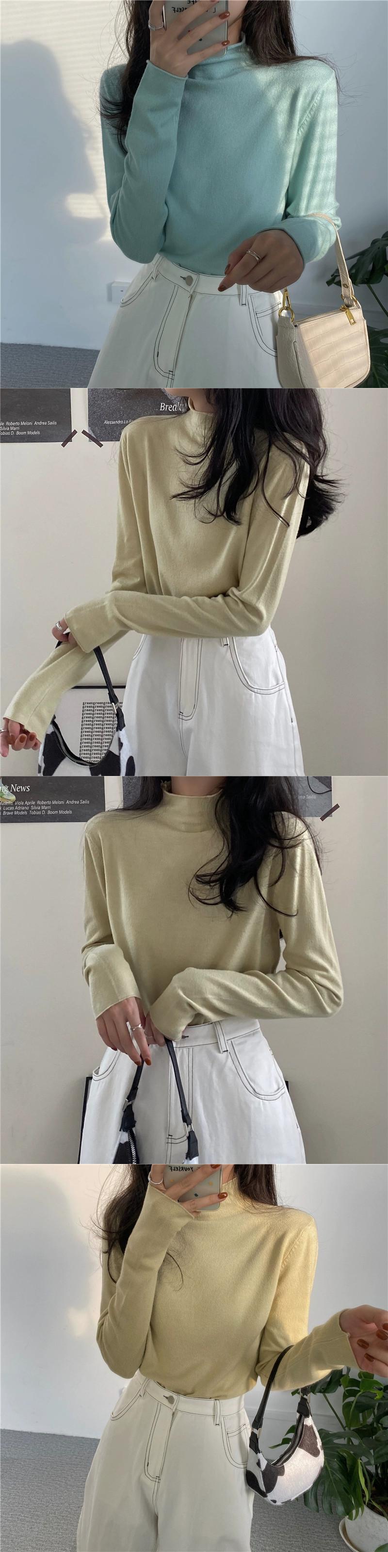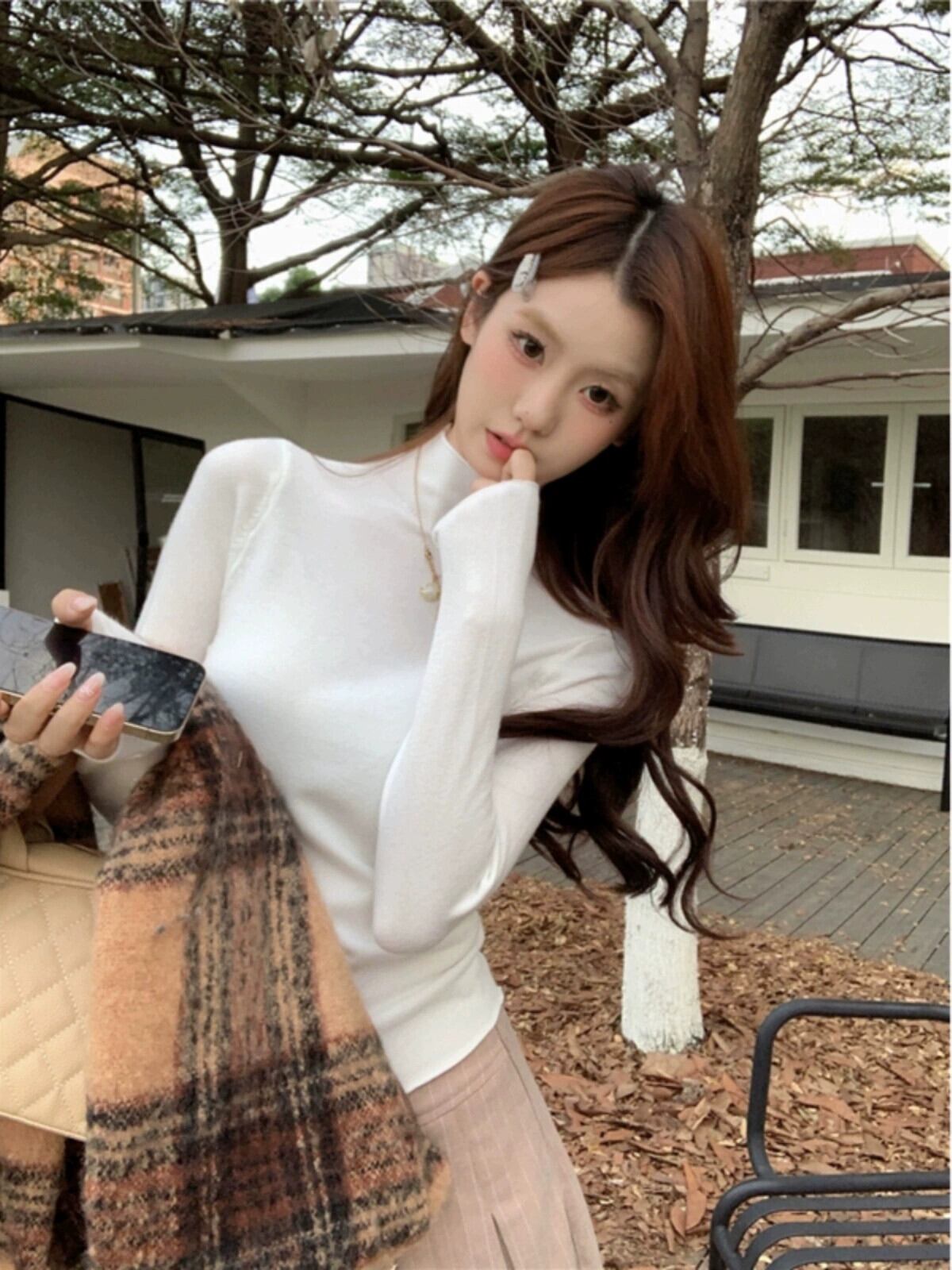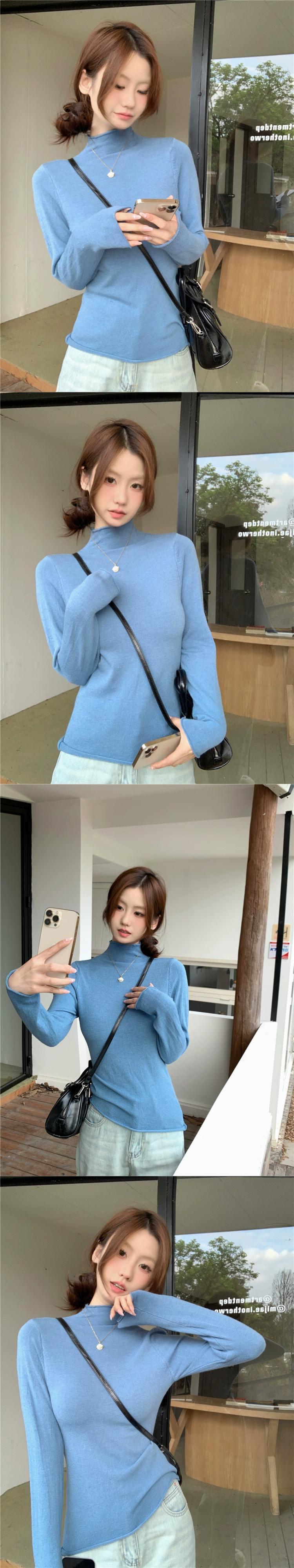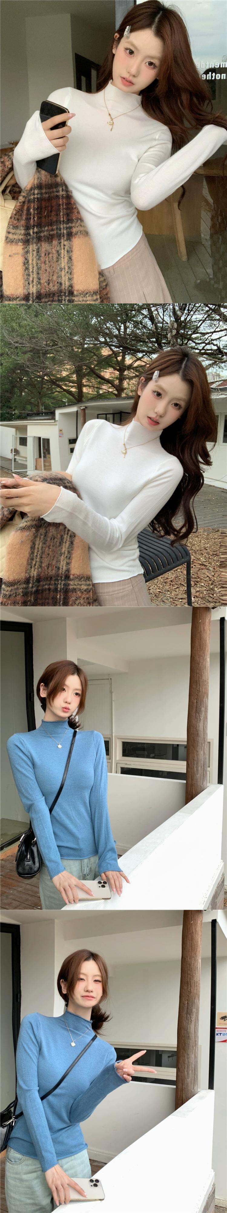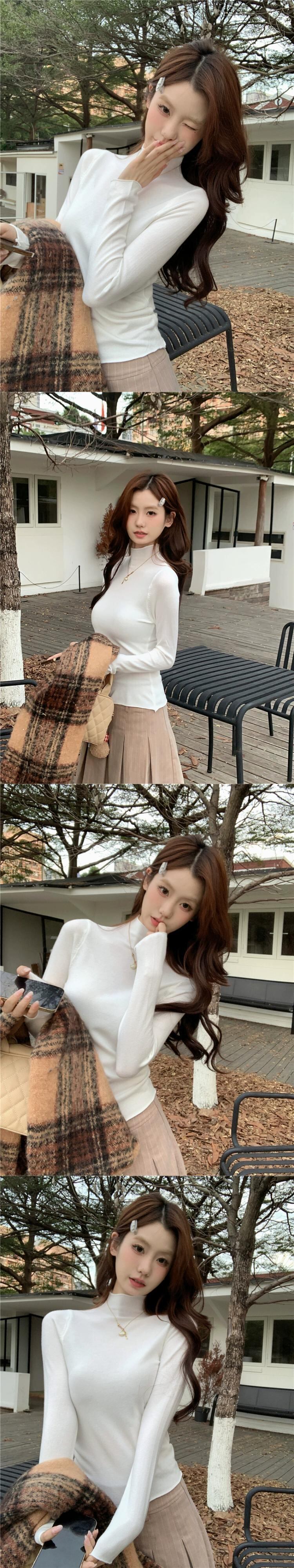 秋冬の白いハーフタートルネックセーター、スリムフィットインナーレイヤリングシャツ、シックでシックな長袖トップ ロング ホワイト オータム 秋物 ウィンター 冬物 missk68542259556