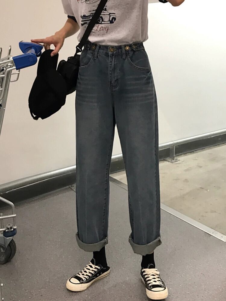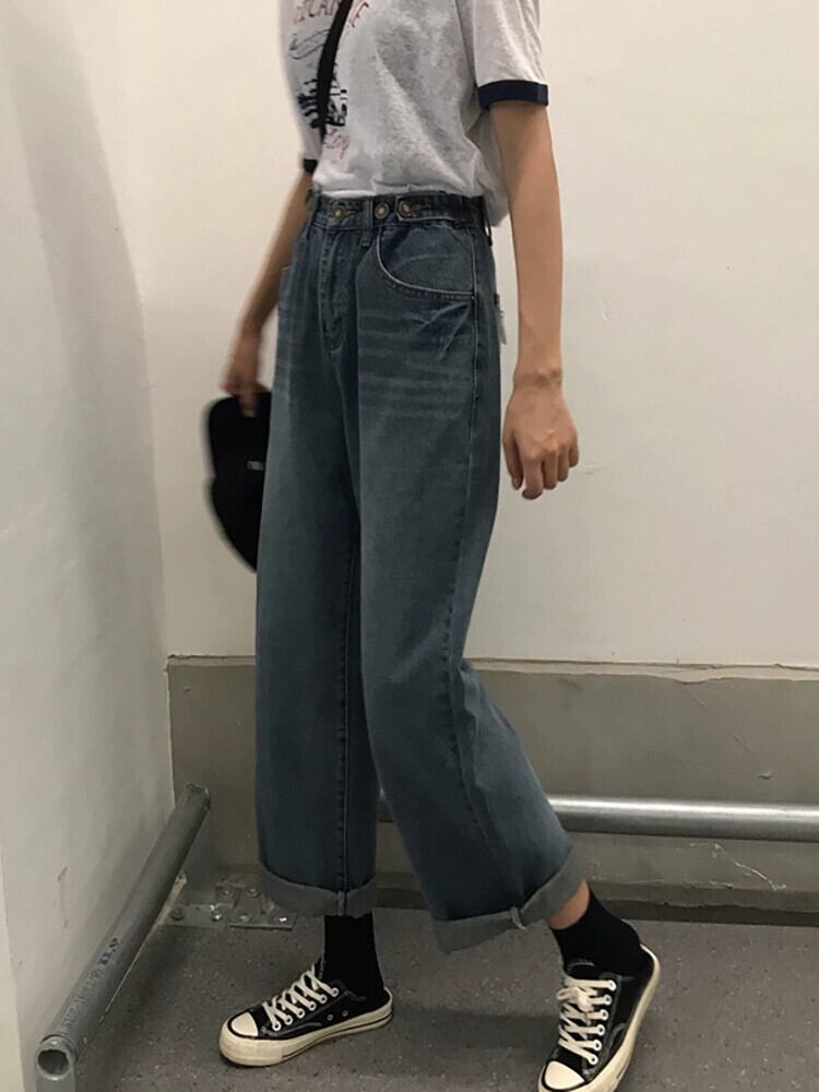2023 新しい秋スタイル小柄ワイドレッグパンツインターネット有名人ヒョナパパパンツルーズハイウエストデニムパンツ女性 オータム 秋物 missk65946051454