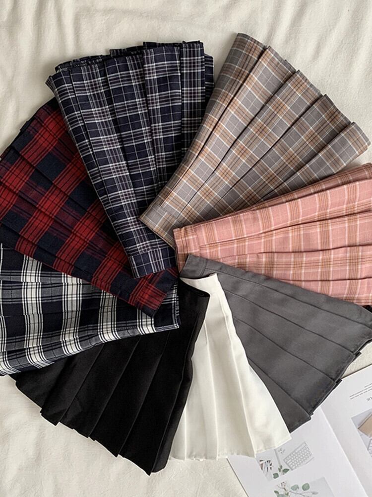 チェック柄スカート レディース 春と秋 Aライン 多用途 ソフトショートスカート カレッジスタイル ハイウエスト プリーツスカート 学生スカート スプリング 春物 オータム 秋物 missk51984184301
