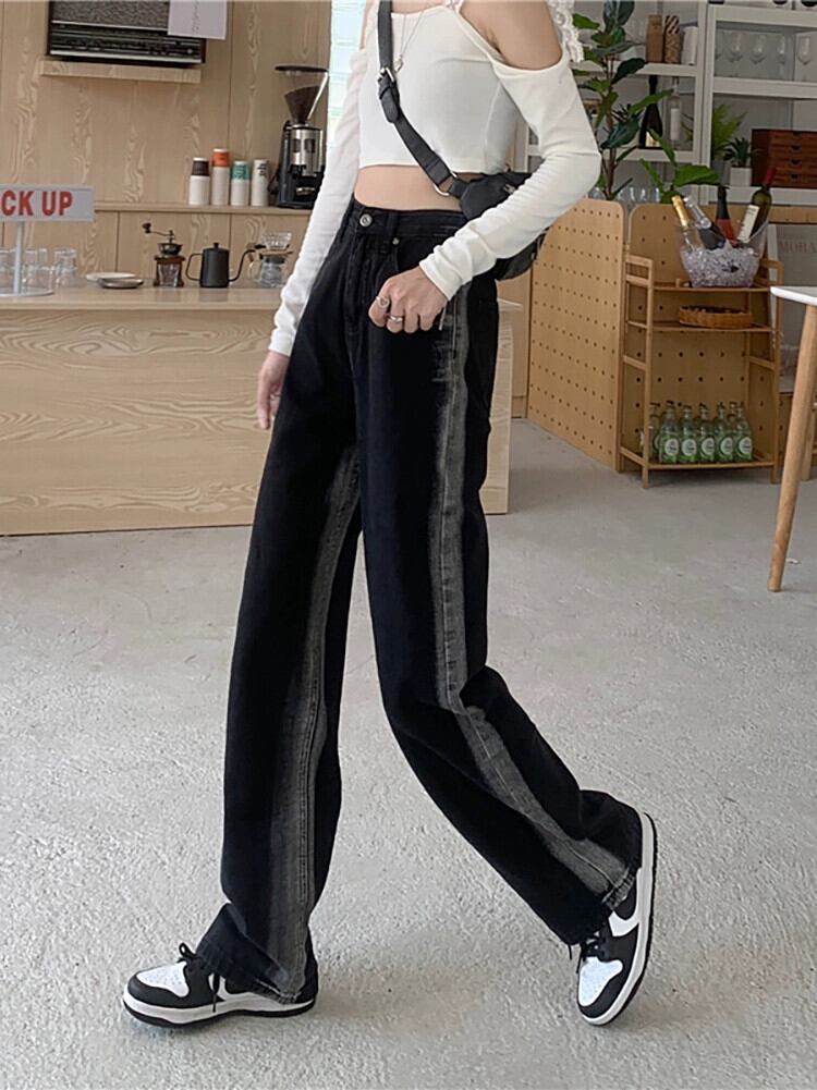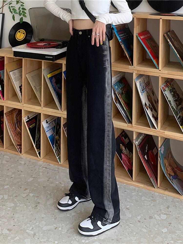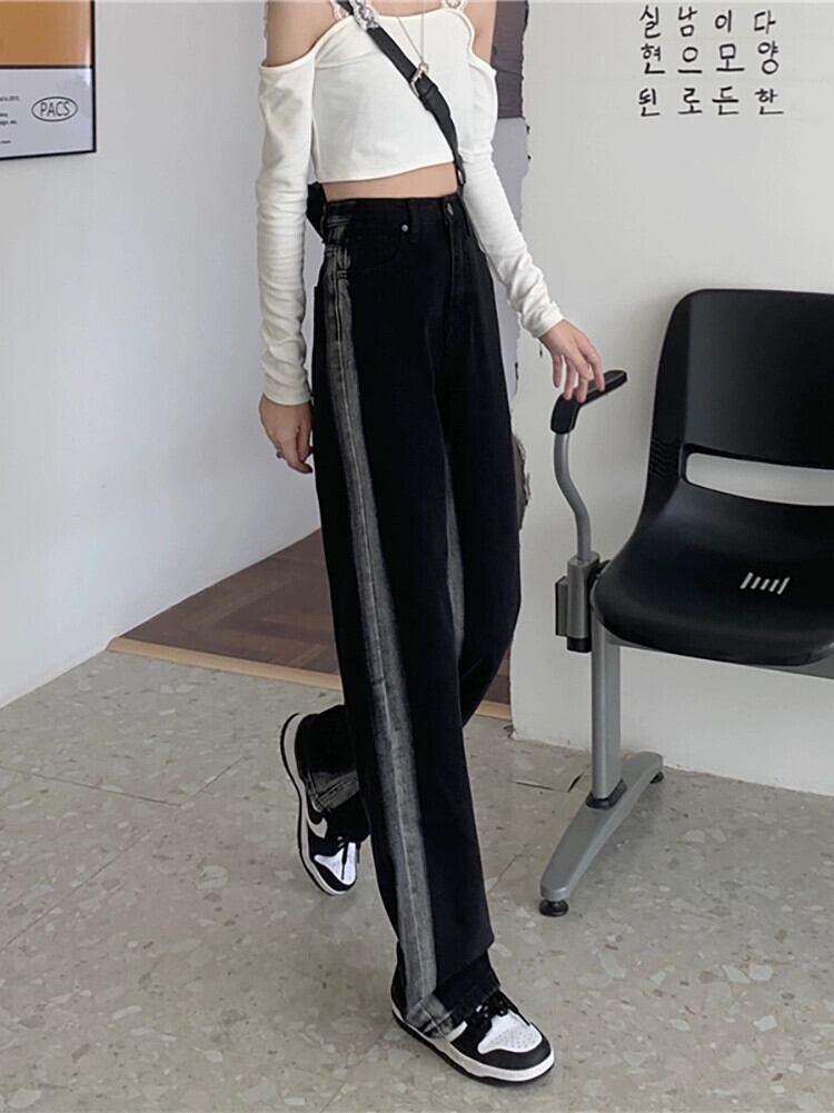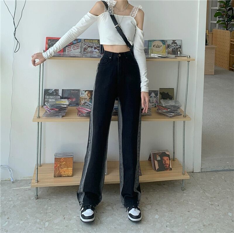 ブラック ストレート ジーンズ 秋 2024 レトロ パンツ レディース ウエスト ルーズ ワイドレッグ パンツ オータム 秋物 ワイドパンツ missk86733098772
